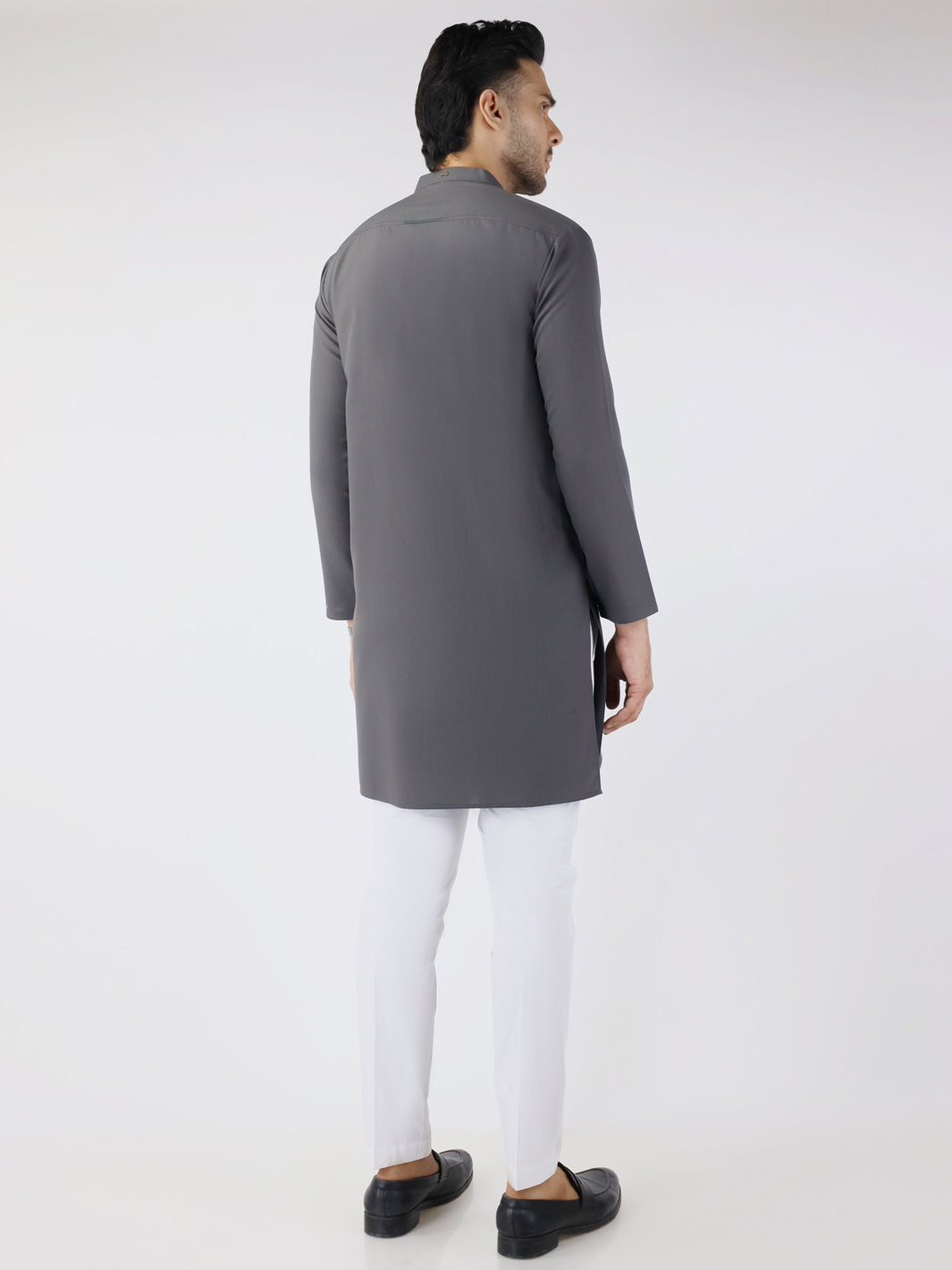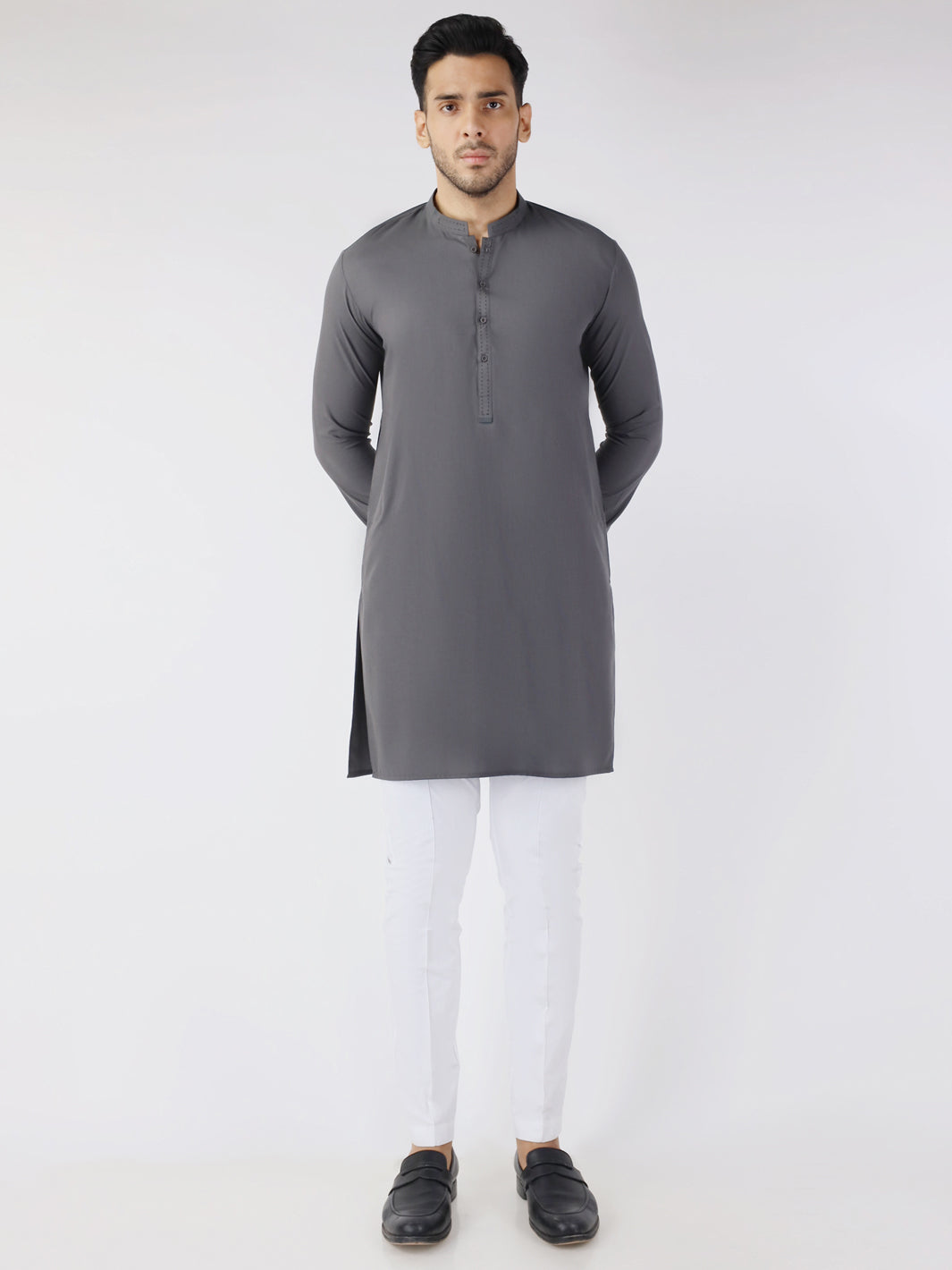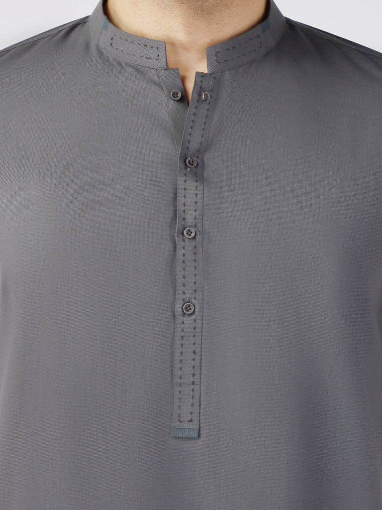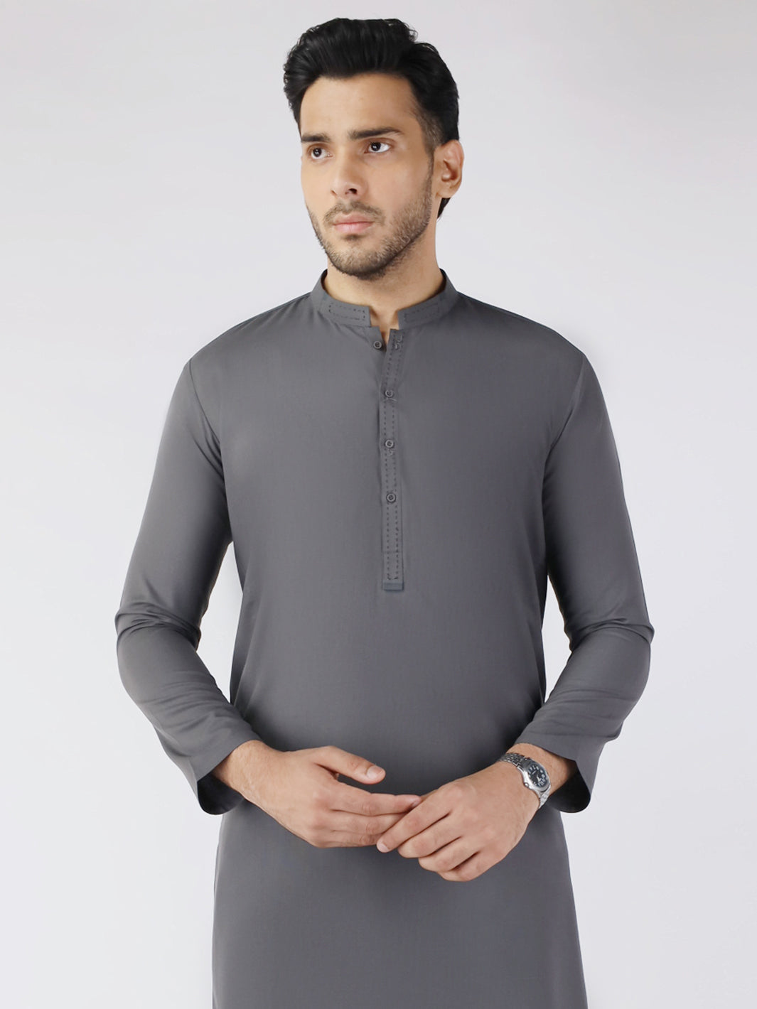 Smart fit kurta with accent and bold stitch highlights on the collar and placket