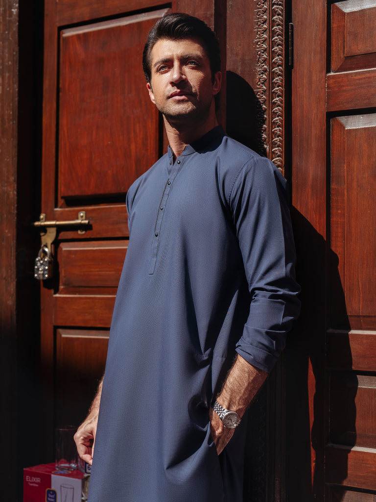 Smart fit kurta featuring accentuated patch details with refined stitch highlights