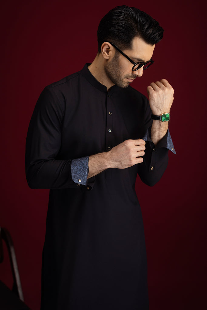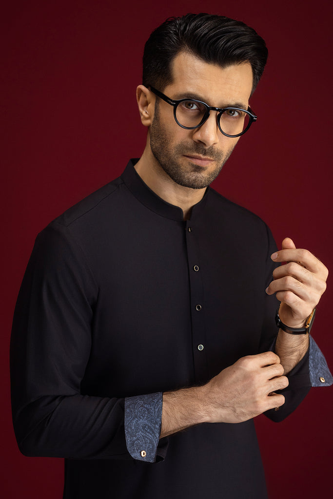 Embroidery at collar, Back yoke, Cuffs and sleeves vent square hem.