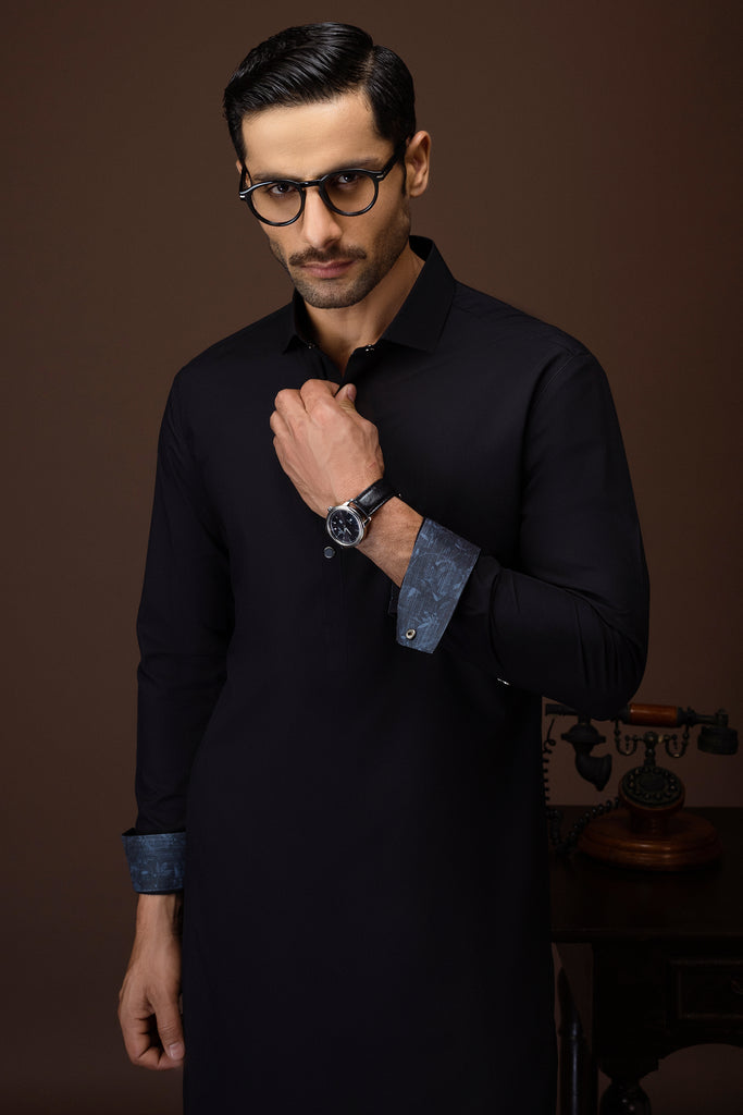 Shirt Collar With Cuffs, Embroidery at Front Shoulder, at Back Yoke, Sleeves Vent And Cuffs, Round Hem