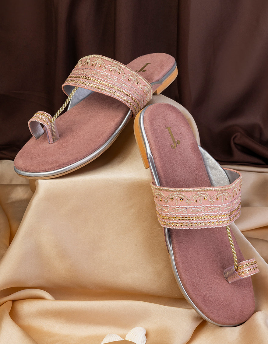 Pink Raw Silk Kolhapuri Chappal