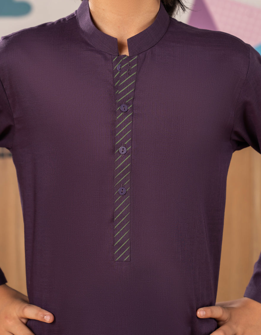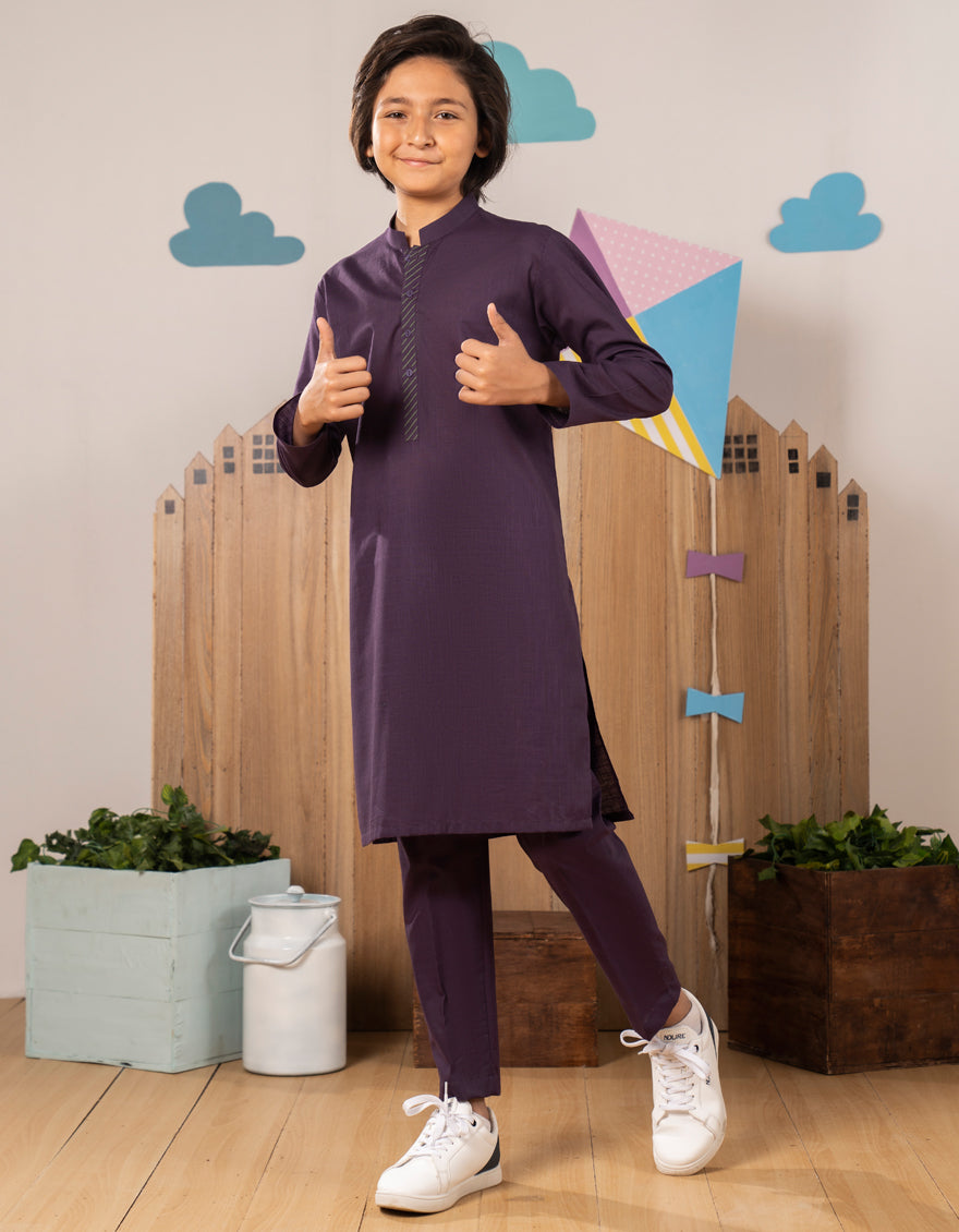 Simple and comfortable, this Purple Blended Kurta Trouser is perfect for young boys. Its classic design makes it ideal for everyday wear and special occasions alike.