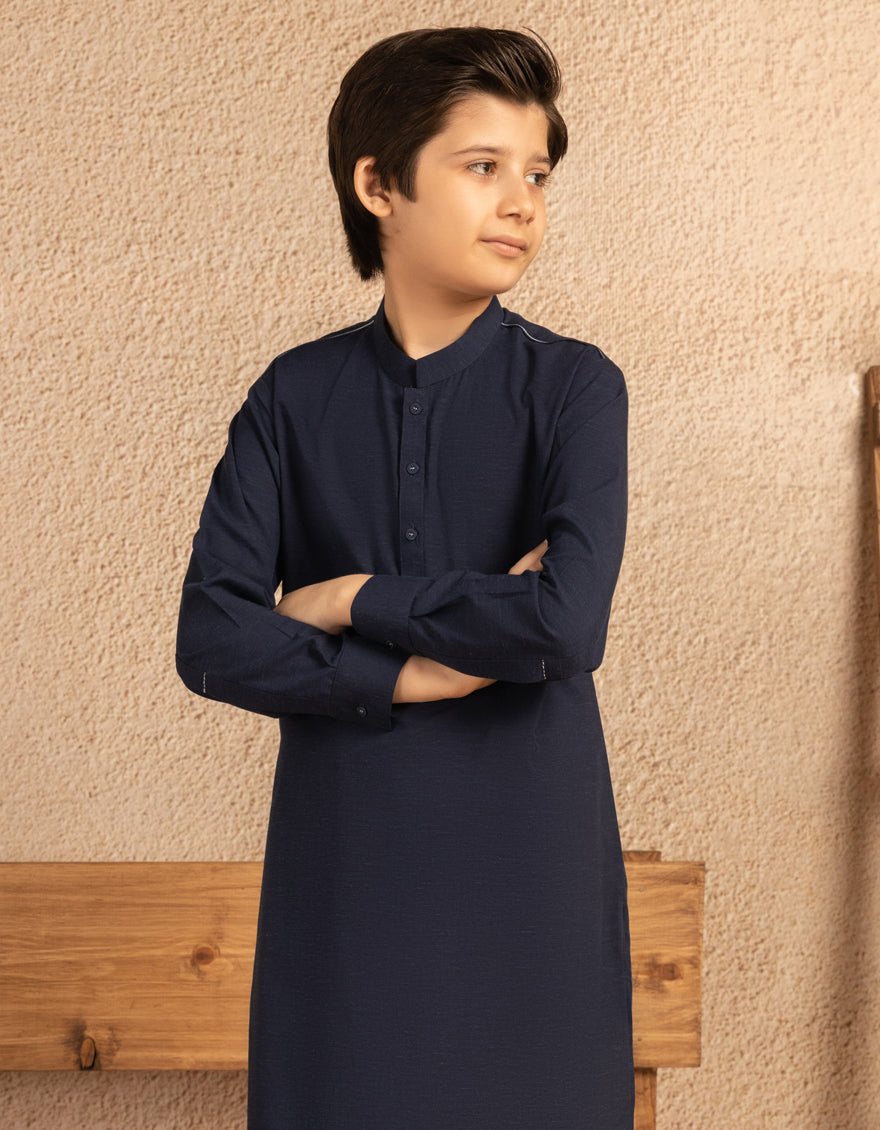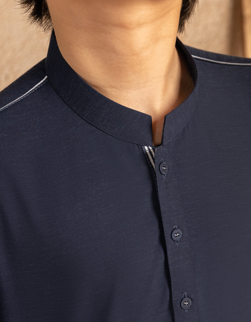 A neat and comfortable navy blue blended casual kurta trouser set designed for everyday wear. Its simple look makes it easy to style for casual gatherings or regular use.