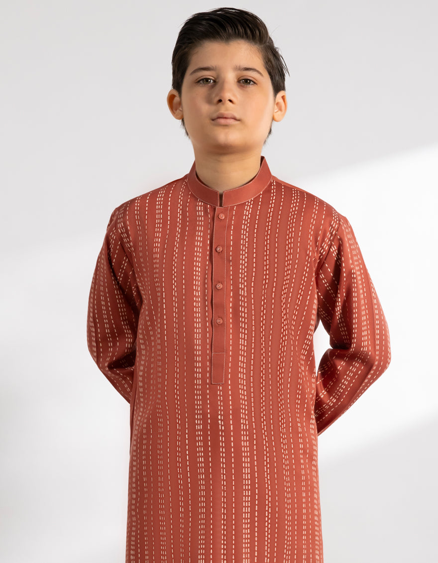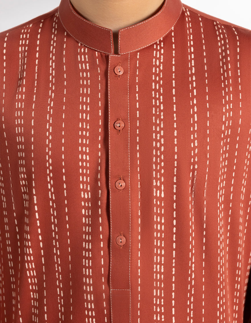 Designed for a sharper, more structured appearance, this Tangerine Blended Kurta Trousers set offers a modern fit with clean lines. The kurta features subtle detailing, while the straight-cut trousers ensure a neat silhouette. Perfect for events, workdays, or weekend wear.