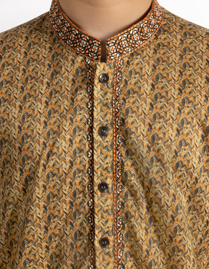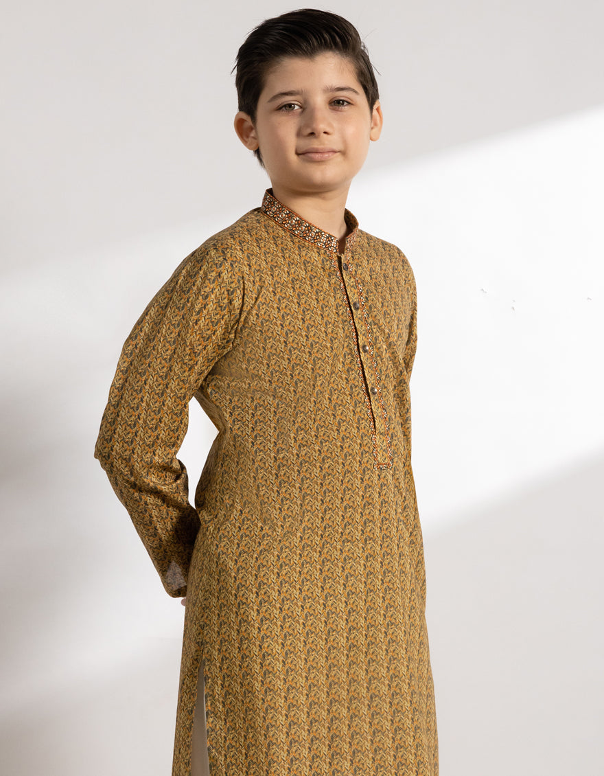Introducing our kid boys' yellow cottonkurta, crafted with comfort in mind for your little ones. Let them explore and play in style with our comfortable and stylish kurtas.