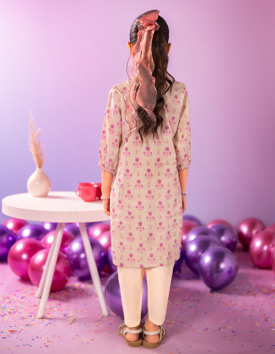 Fabric Type: Printed Shirt With Frills And Tassel On Neckline And Border On Daaman