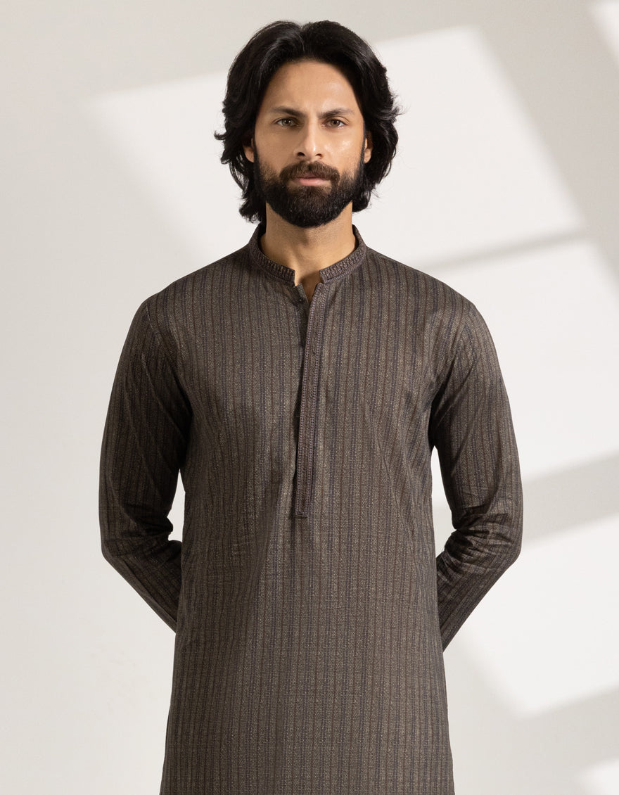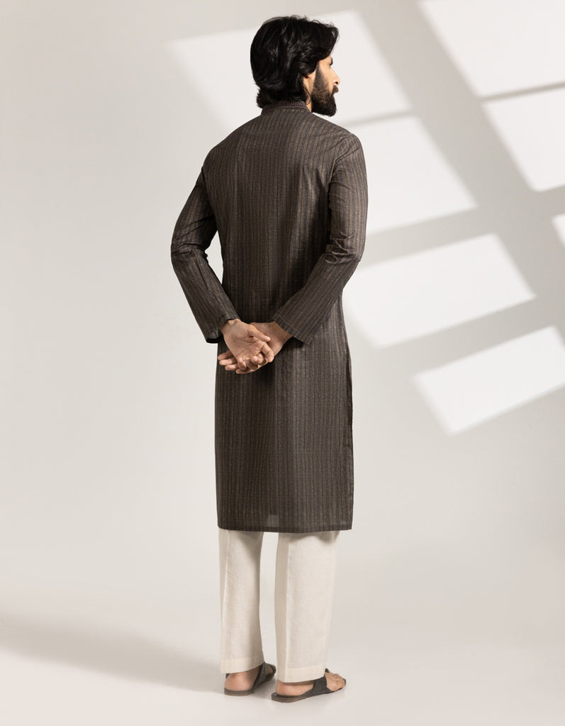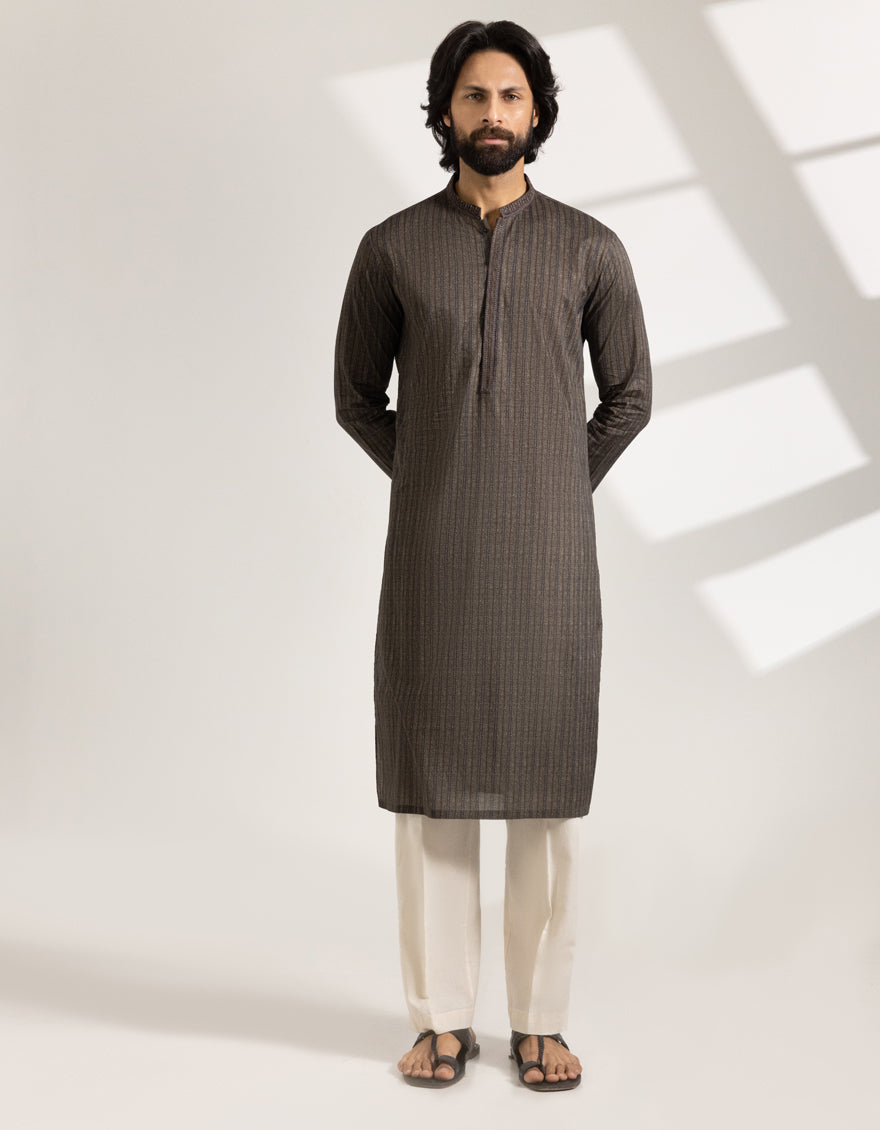 This Green Cotton Printed Semi-Formal Kurta combines elegance with simplicity. Finished with detailed stitching and smart button styling, it's ideal for semi-formal occasions or casual meetups. A versatile piece that carries both ease and refinement.