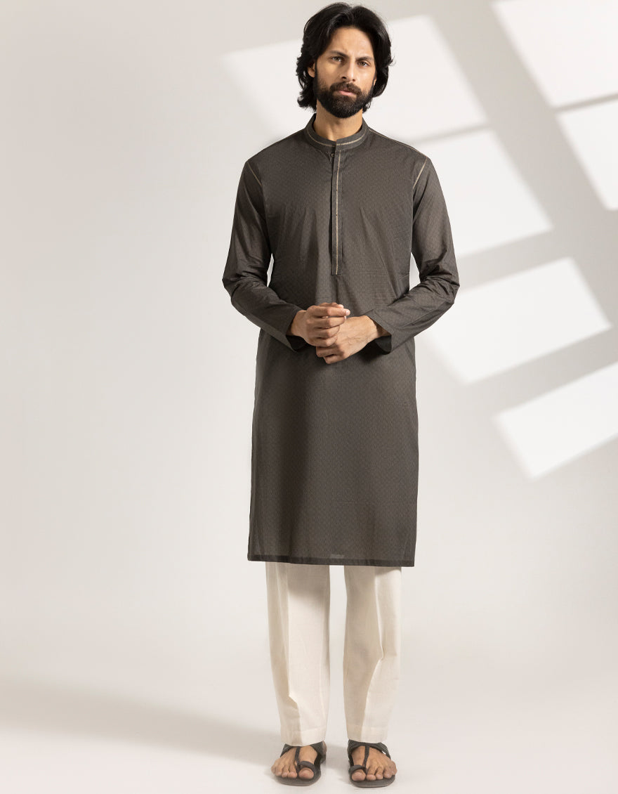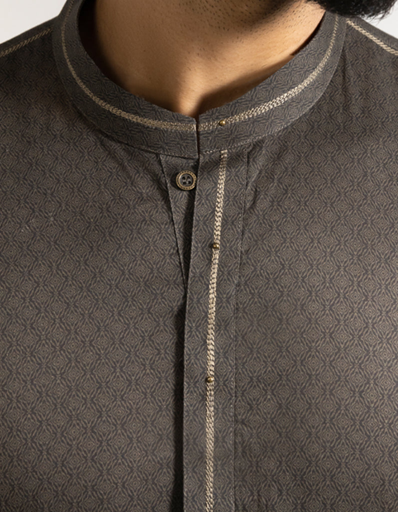 This Mehndi Brown Cotton Printed Semi-Formal Kurta combines elegance with simplicity. Finished with detailed stitching and smart button styling, it's ideal for semi-formal occasions or casual meetups. A versatile piece that carries both ease and refinement.