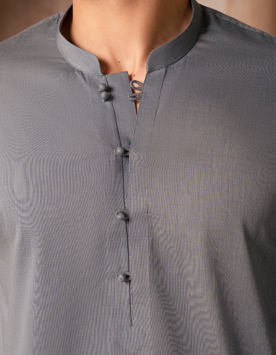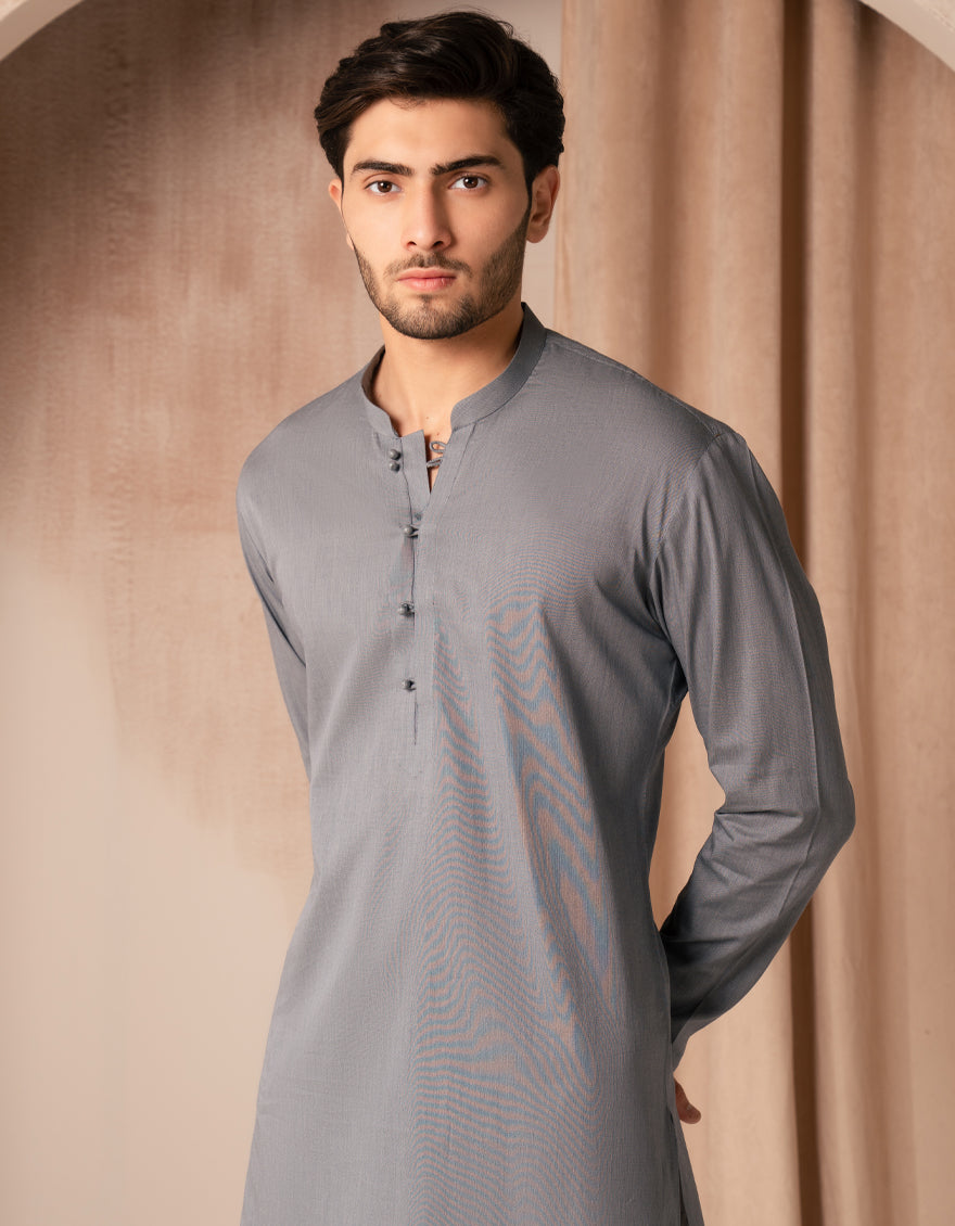Our new range of Short Kurtas is all about laid-back style and easy comfort. From classic shades to bold colors, each piece is versatile enough to keep your look fresh and effortless. A neat and comfortable grey cotton casual short kurta trouser set designed for everyday wear.
