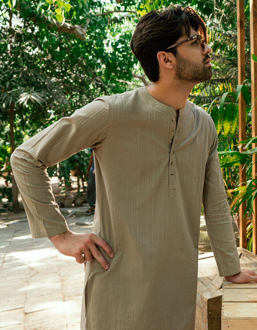 This beige bunnat cotton casual short kurta combines classic style with modern simplicity. Featuring a comfortable thigh-length cut, it™s designed for easy, everyday wear.
