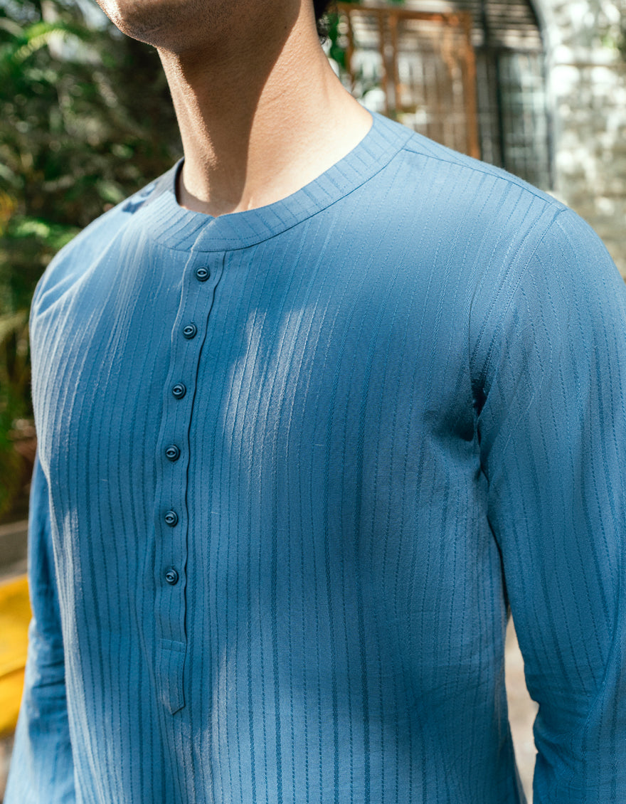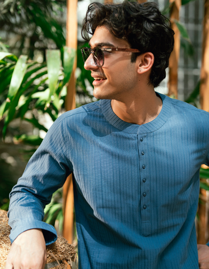 This dull blue bunnat cotton casual short kurta combines classic style with modern simplicity. Featuring a comfortable thigh-length cut, it™s designed for easy, everyday wear.