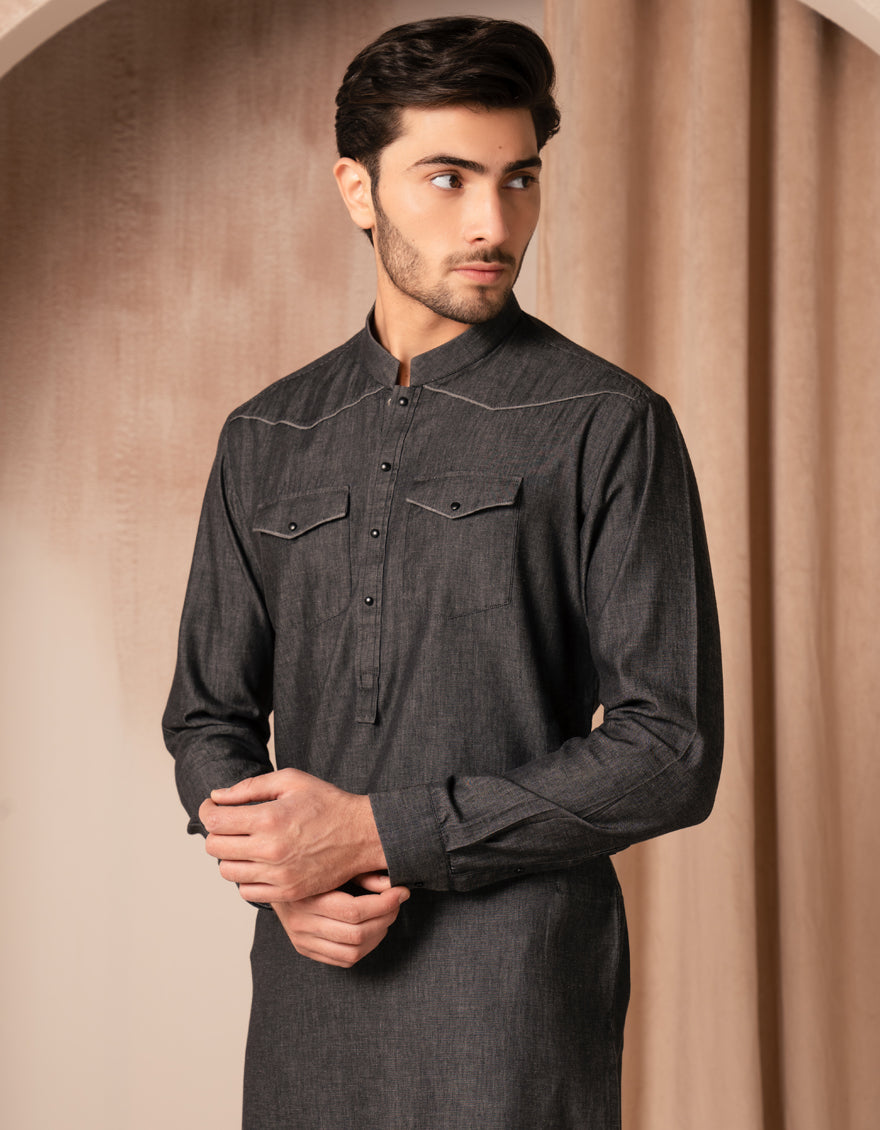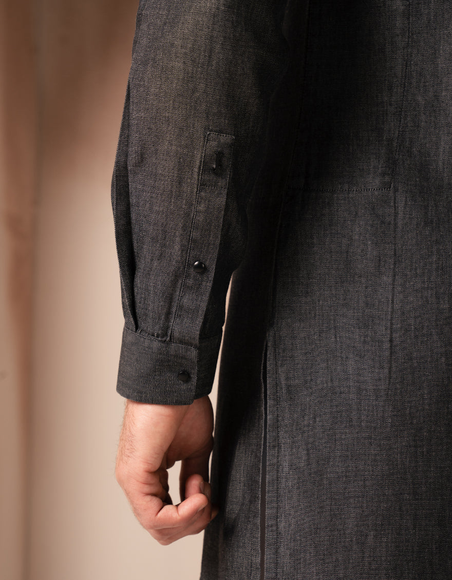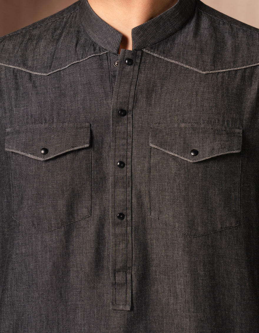 This denim black cotton casual short kurta combines classic style with modern simplicity. Featuring a comfortable thigh-length cut, it™s designed for easy, everyday wear.