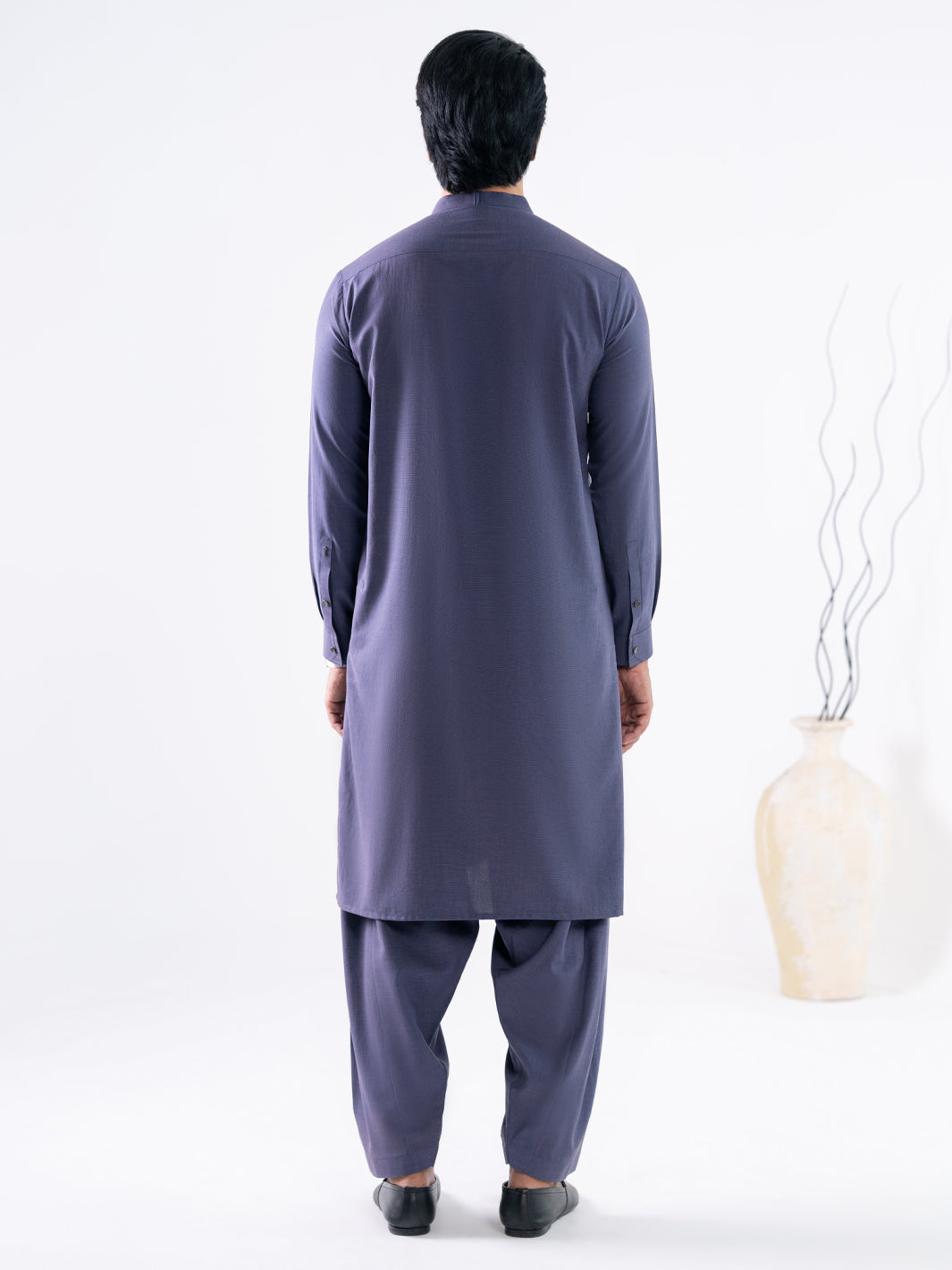Purple Cut And Sew Kameez Shalwar With Pintucks And Rivets On Invisible Placket