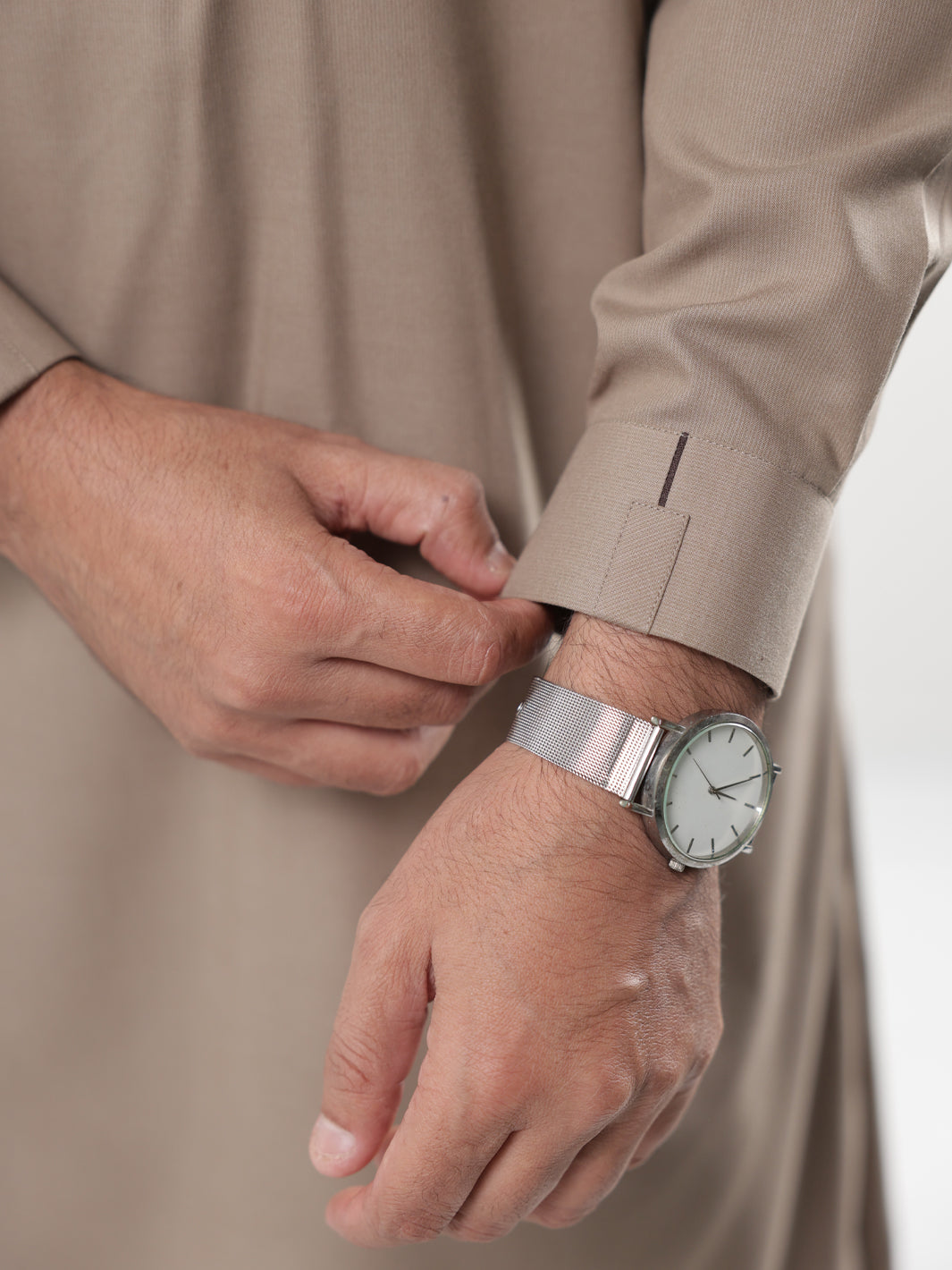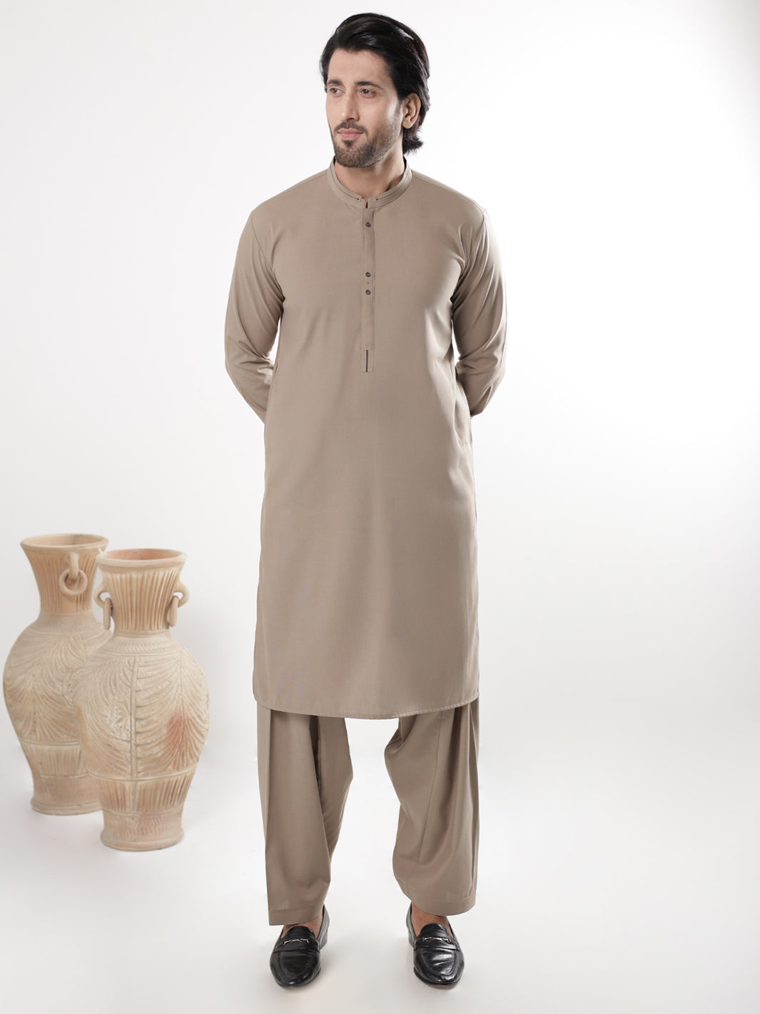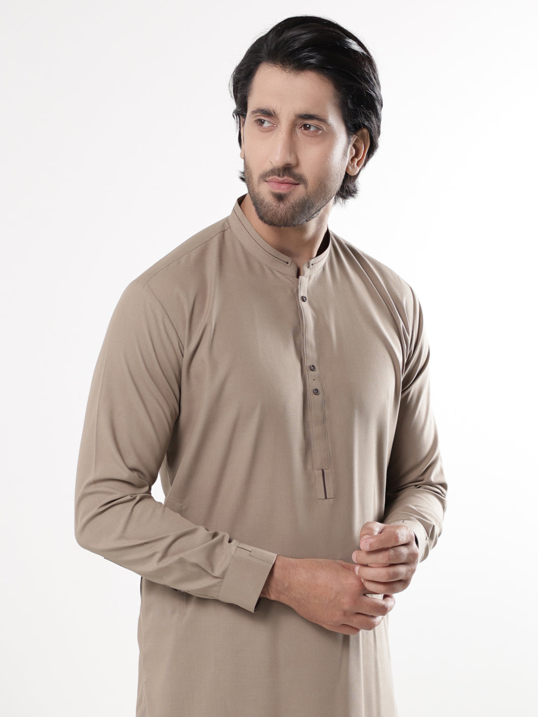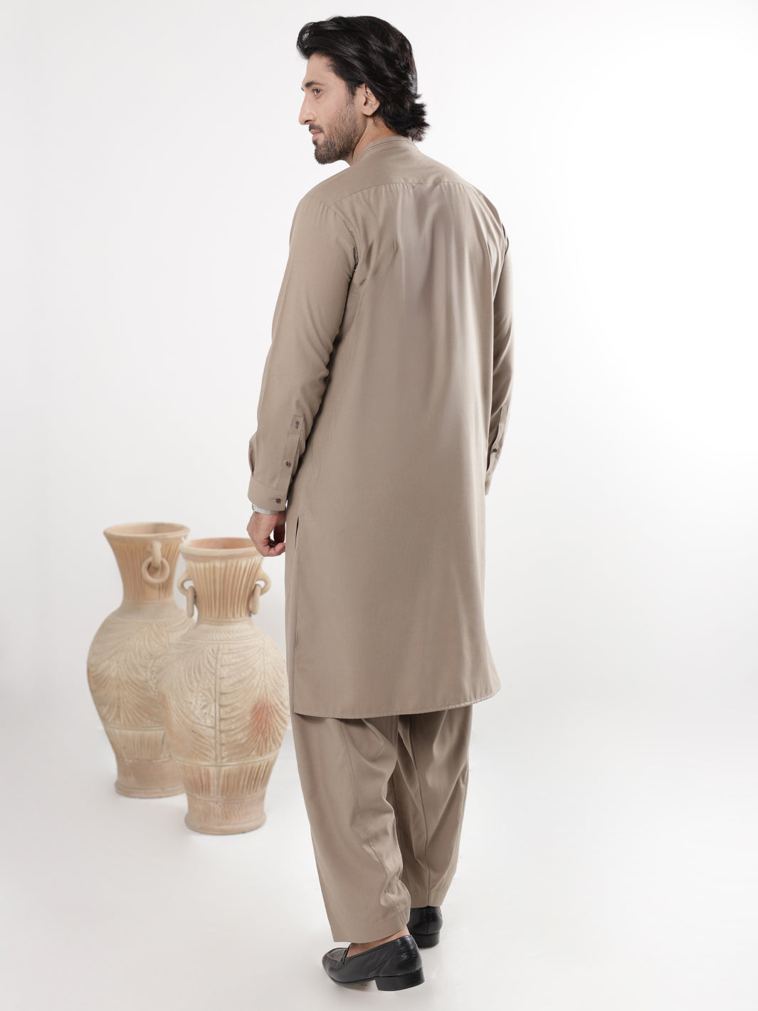 Kameez Shalwar Featuring Minimal Contrast And Patch Details On The Collar Enhanced With Rivets