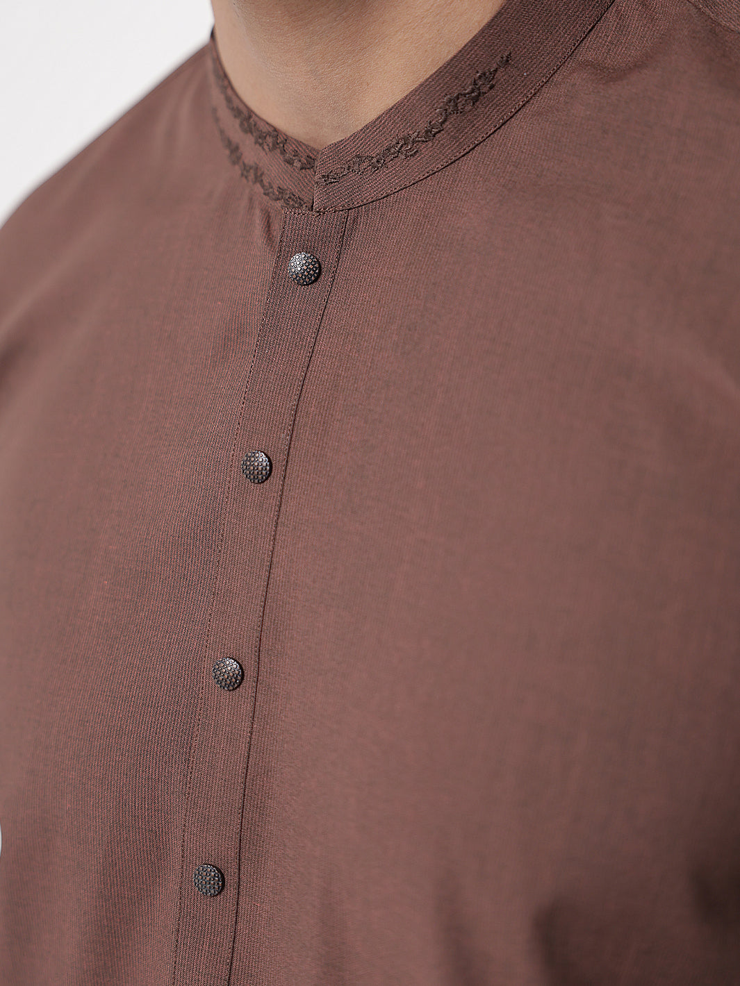 Semi Formal Kameez Shalwar Adorned With Asymmetrically Placed Intricate Embroidery