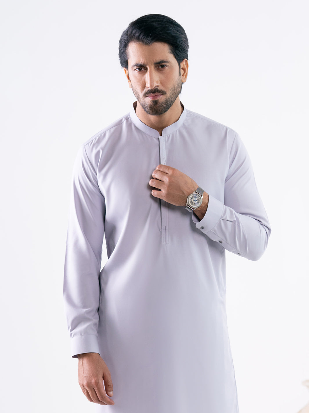 Lilac Cut And Sew Kameez Shalwar With Stitch And Patch Details On Invisible Placket
