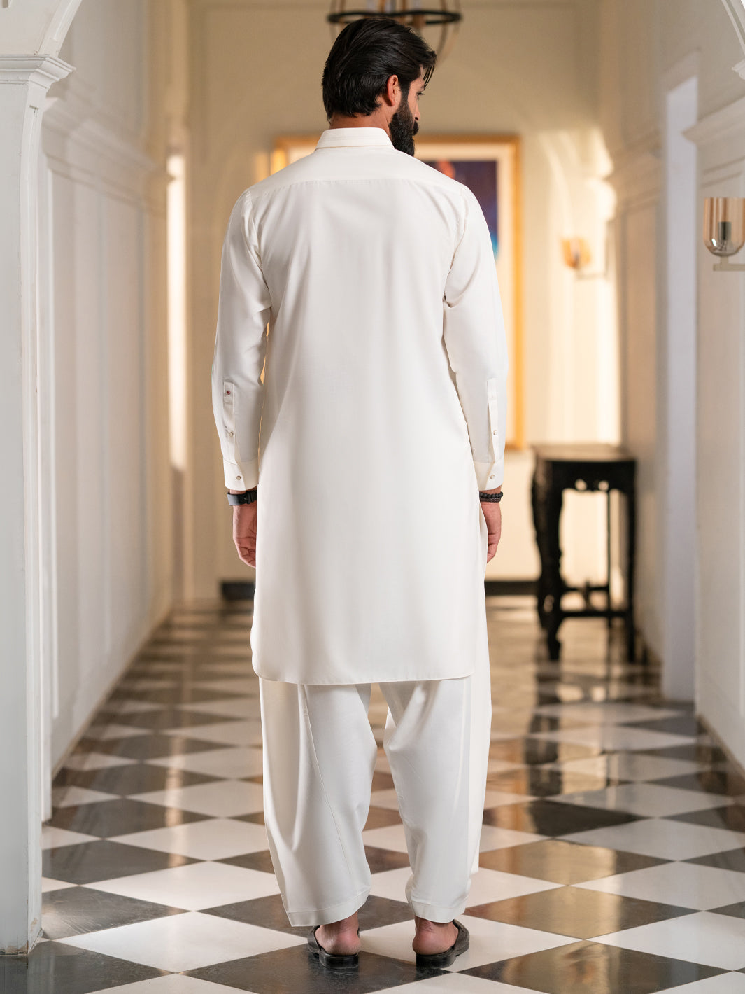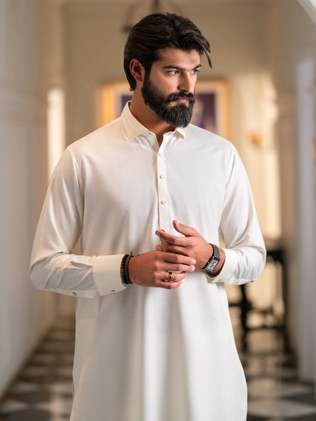 White Wasim Akram With Patch And Pintucks Details
