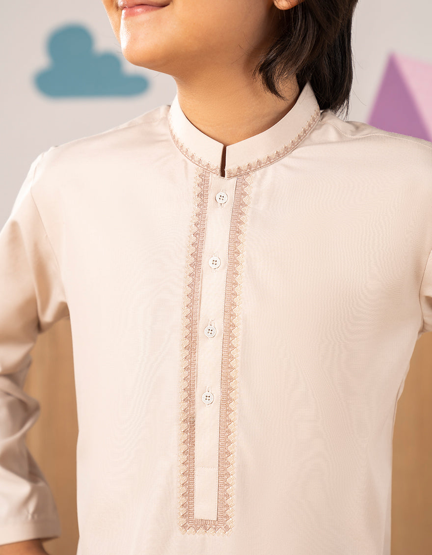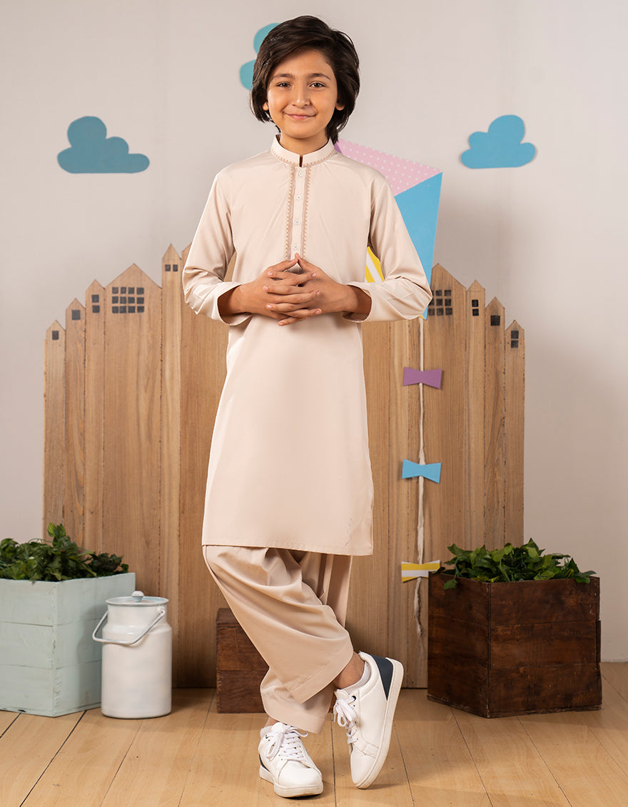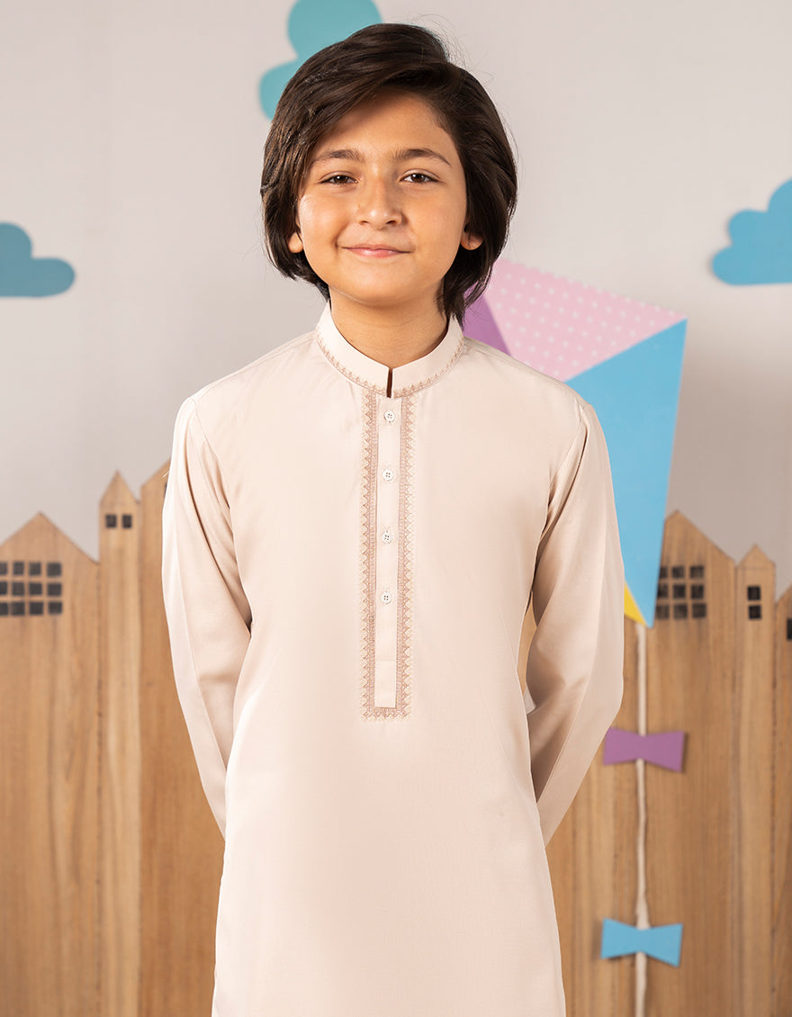 Simple and comfortable, this Cream Blended Kurta Trouser is perfect for young boys. Its classic design makes it ideal for everyday wear and special occasions alike.
