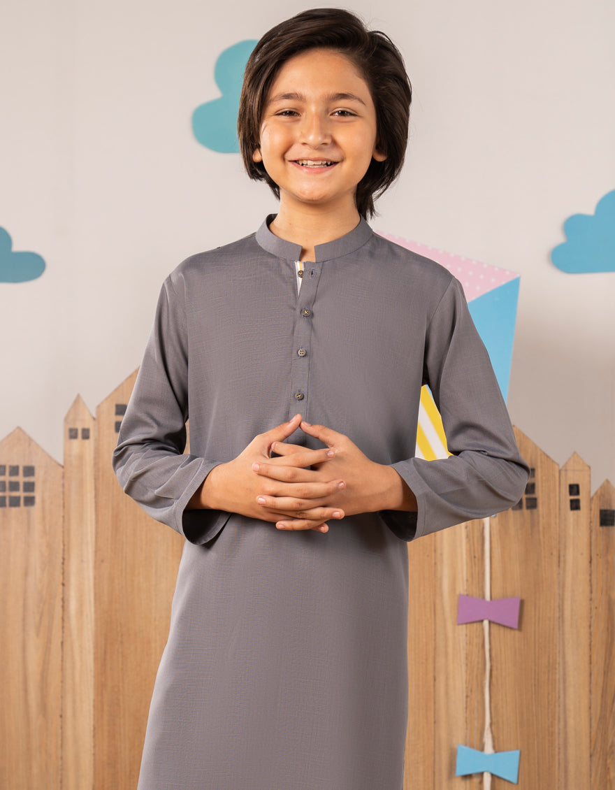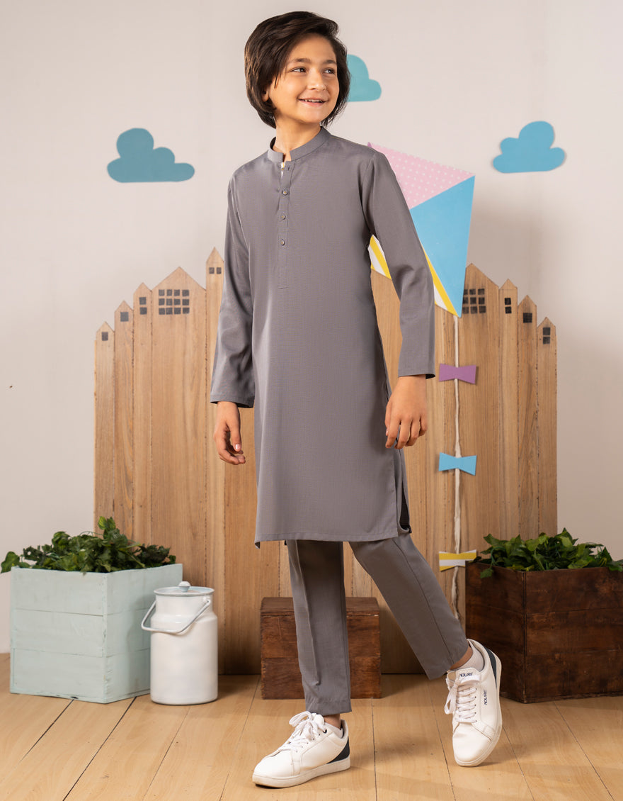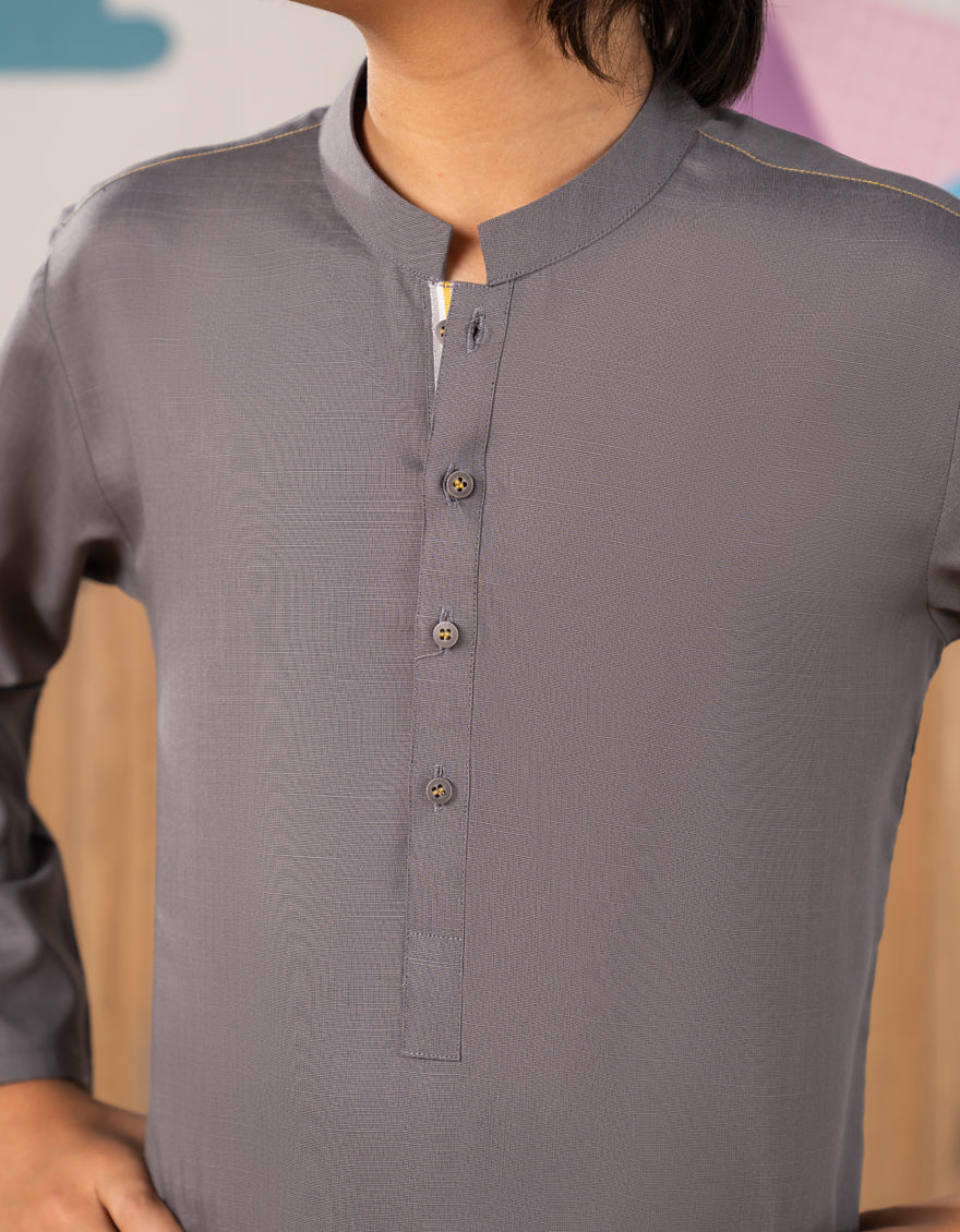 Simple and comfortable, this Grey Blended Kurta Trouser is perfect for young boys. Its classic design makes it ideal for everyday wear and special occasions alike.