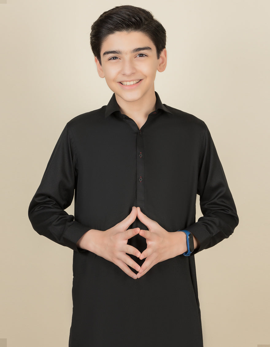 Made for the modern young man, this kameez shalwar is a perfect blend of style and comfort. Its simple yet elegant design makes it suitable for a range of occasions, ensuring that your little one looks his best.