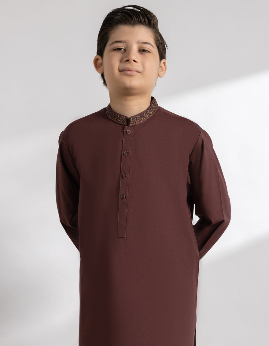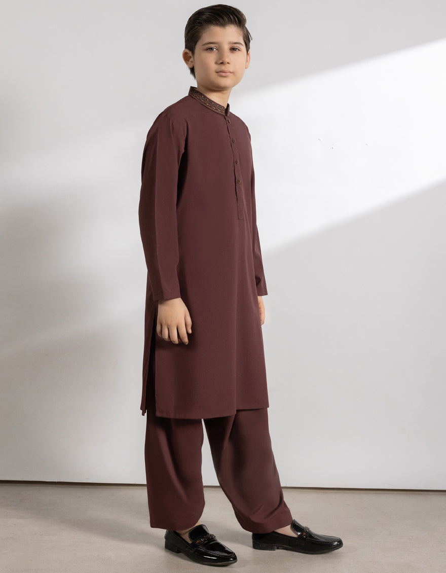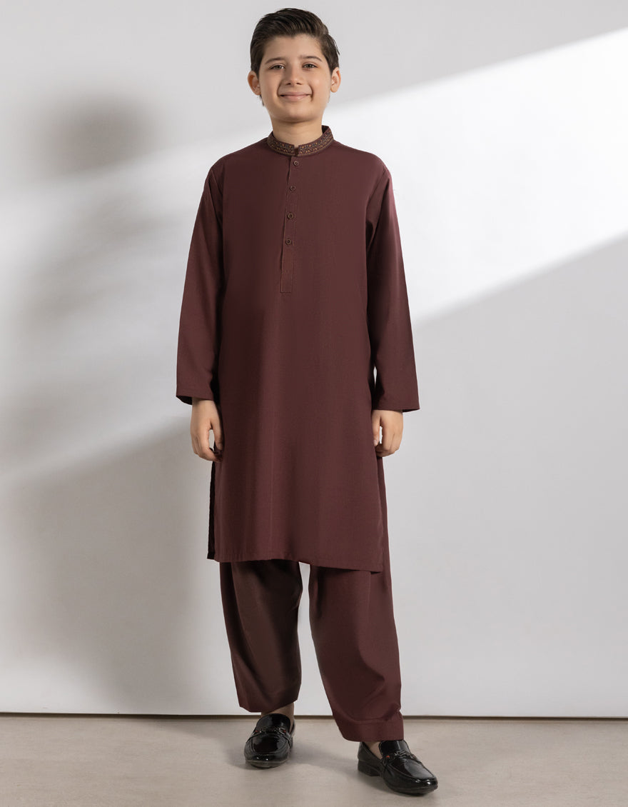 Made for the modern young man, this plum blended kameez shalwar is a perfect blend of style and comfort. Its simple yet elegant design makes it suitable for a range of occasions, ensuring that your little one looks his best.