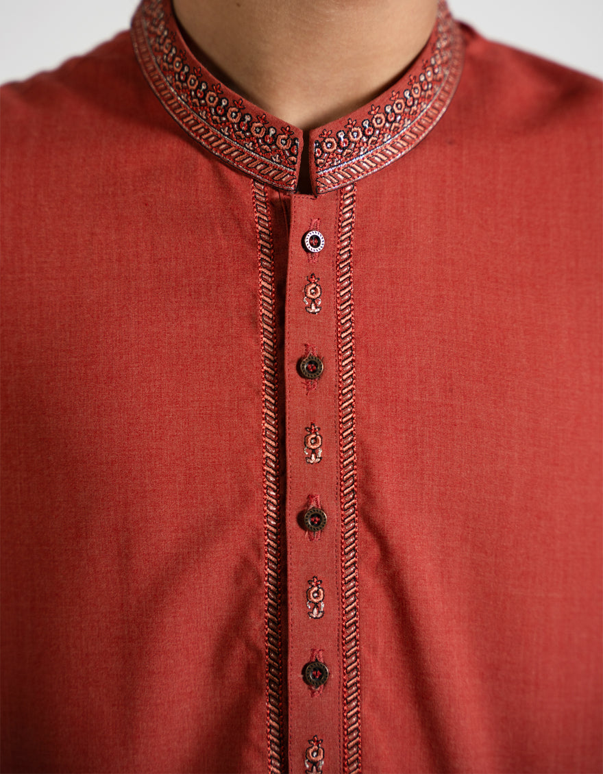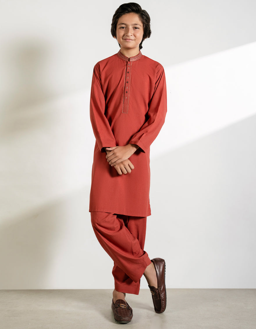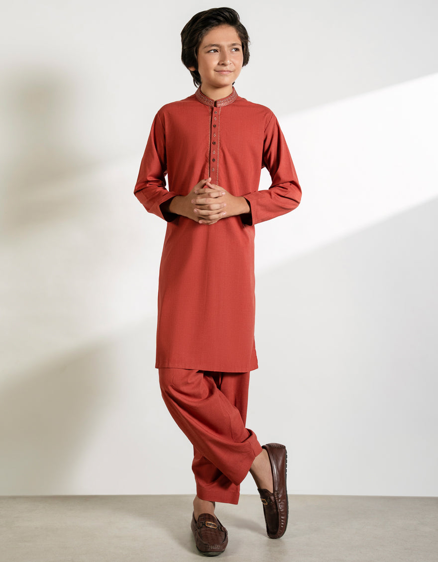 A comfortable and classic Tangerine Blended Kameez Shalwarmade for little boys. Easy to wear and perfect for everyday use. Neat stitching and a smart look keep your child looking tidy and well-dressed.