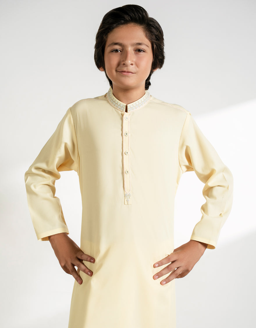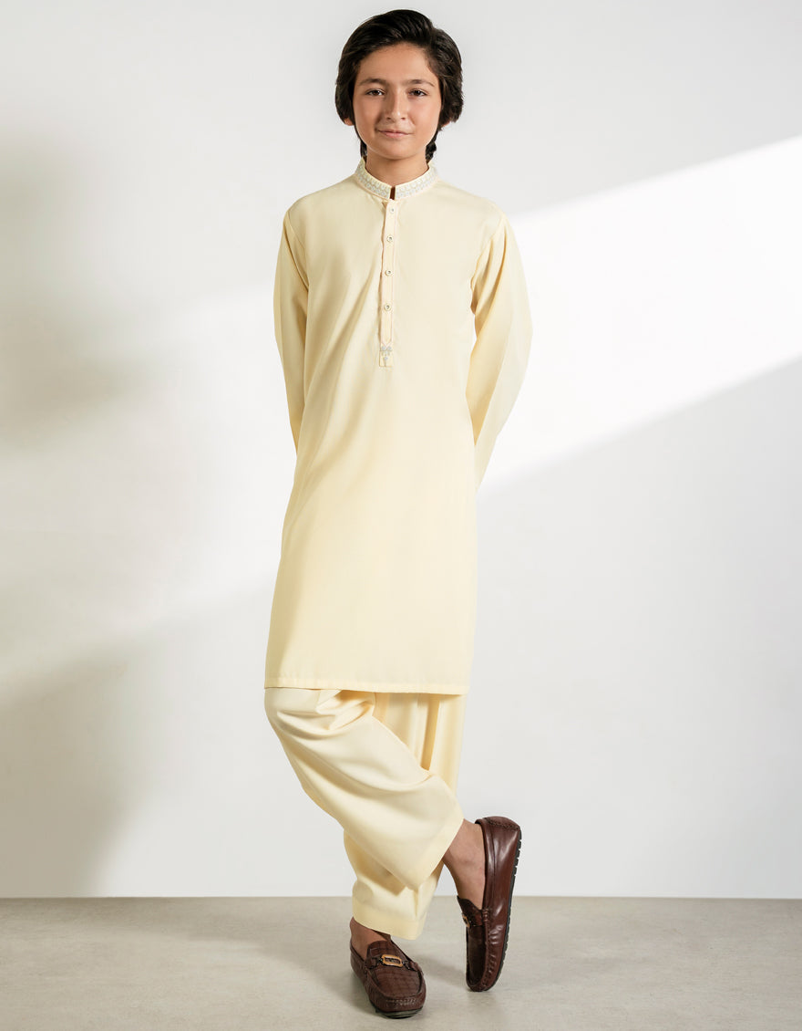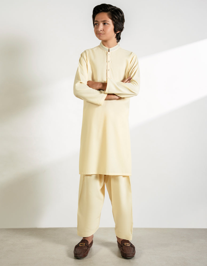A comfortable and classic Light Beige Blended Kameez Shalwarmade for little boys. Easy to wear and perfect for everyday use. Neat stitching and a smart look keep your child looking tidy and well-dressed.