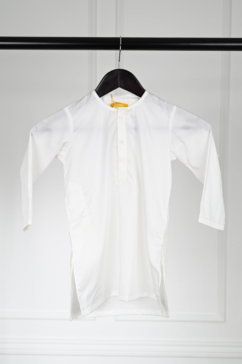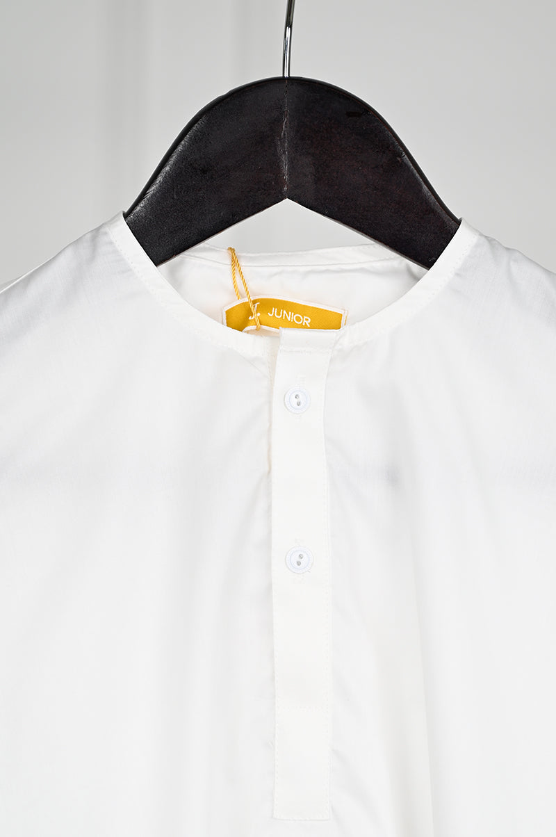 Made for the modern young man, this White Blended Kameez Shalwar is a perfect blend of style and comfort. Its simple yet elegant design makes it suitable for a range of occasions, ensuring that your little one looks his best.