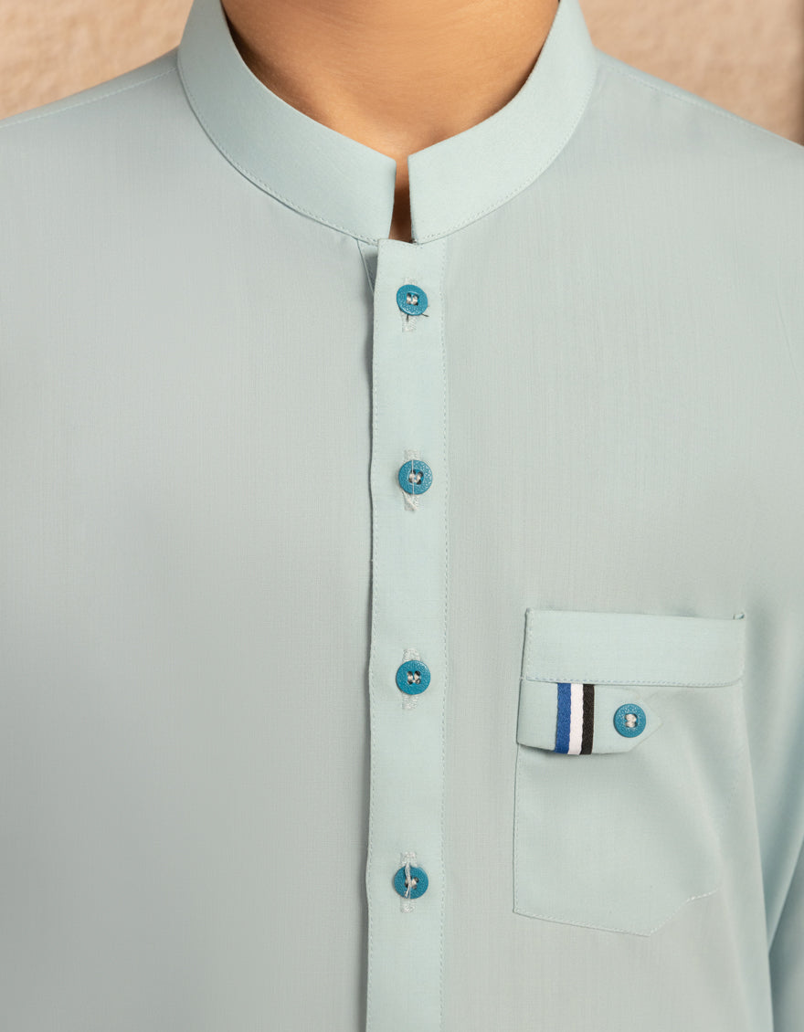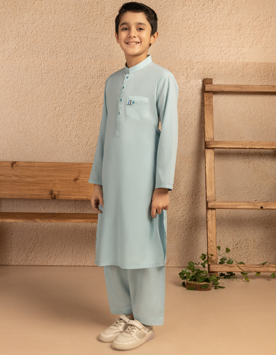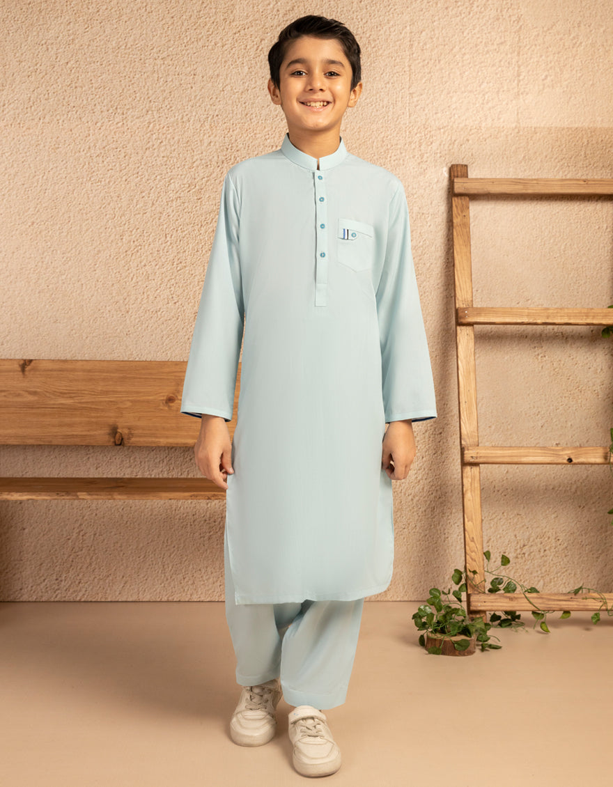 Traditional and simple, this sky blue blended casual kameez shalwar is made for comfortable daily wear and relaxed occasions.