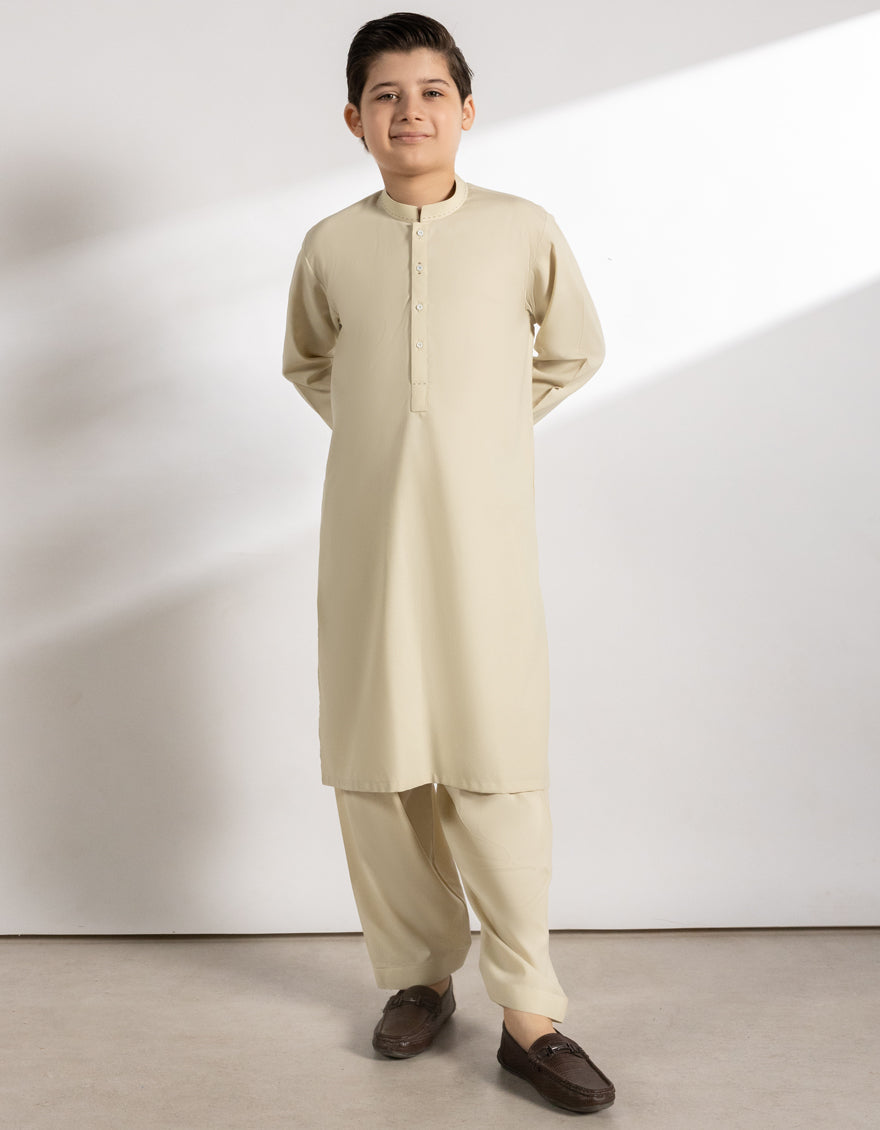 A comfortable and classic Fawn Blended Kameez Shalwarmade for little boys. Easy to wear and perfect for everyday use. Neat stitching and a smart look keep your child looking tidy and well-dressed.