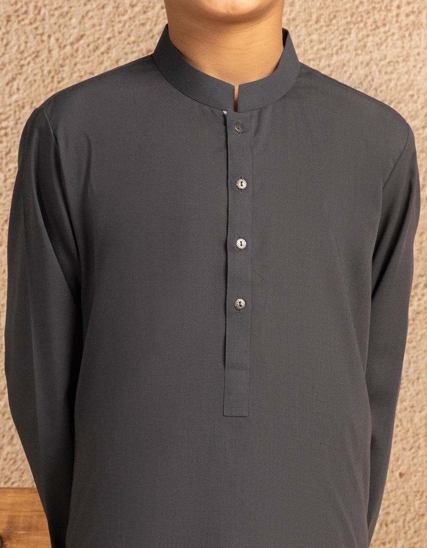 Traditional and simple, this dark grey blended casual kameez shalwar is made for comfortable daily wear and relaxed occasions.