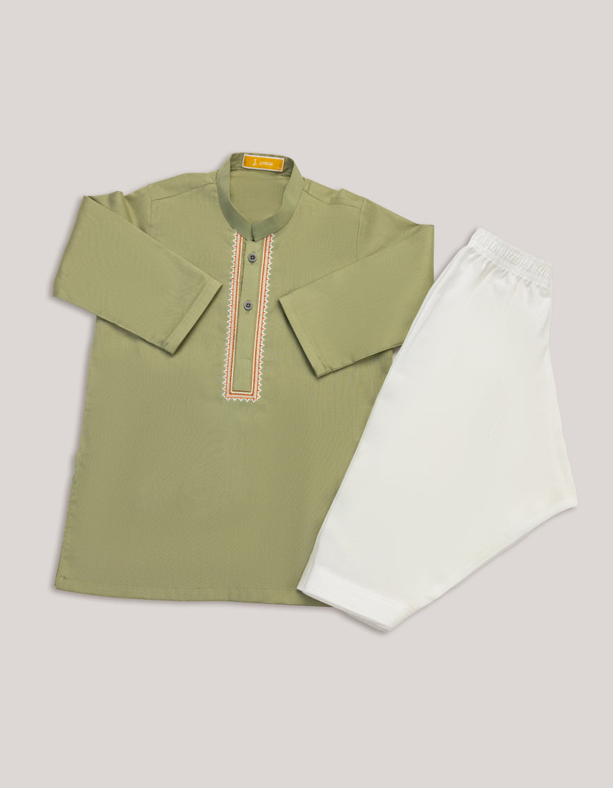 Dress your young one in pure comfort and timeless style with our infant kameez shalwar. Perfect for any occasion, this outfit is a must-have for every little wardrobe.Dull Green Cotton Kameez Shalwar