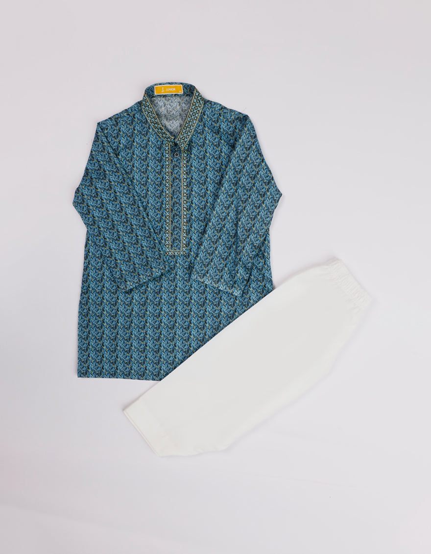 Made for comfort and ease, this Blue Cotton Printed Kameez Shalwar features soft stitching and a gentle design touch. The subtle patterns and button details add a graceful look without causing any fuss. Ideal for little ones who need free movement with a neat appearance.