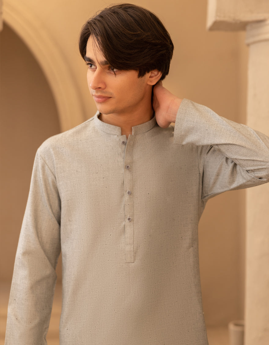 Explore our latest teen boys' minst green blended kurta, designed with a blend of classic simplicity and Eastern charm. This outfit offer a stylish yet understated look, suitable for a variety of occasions.
