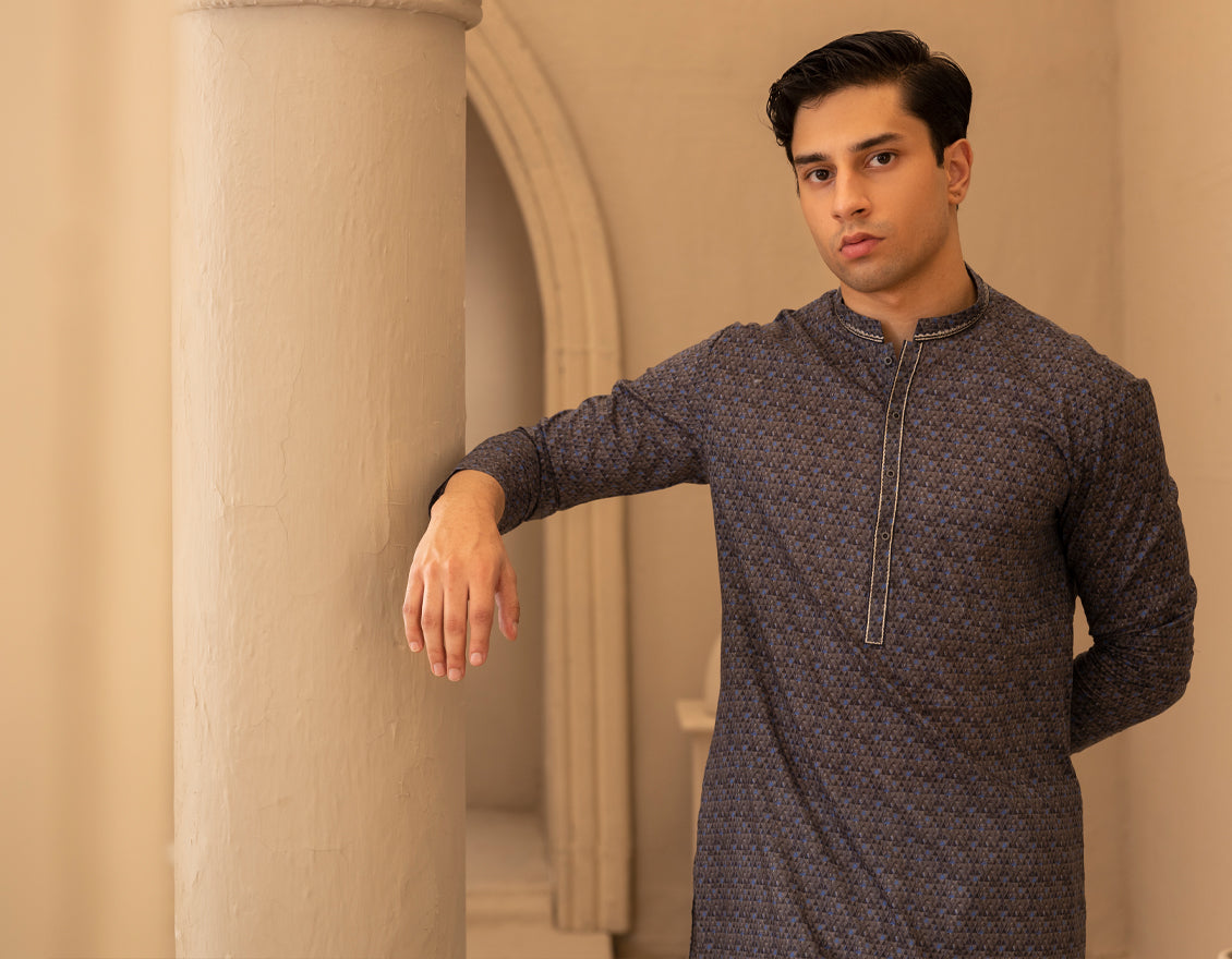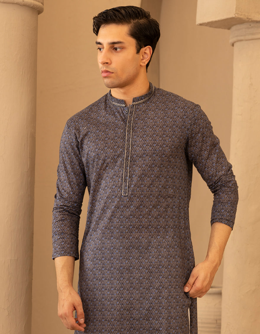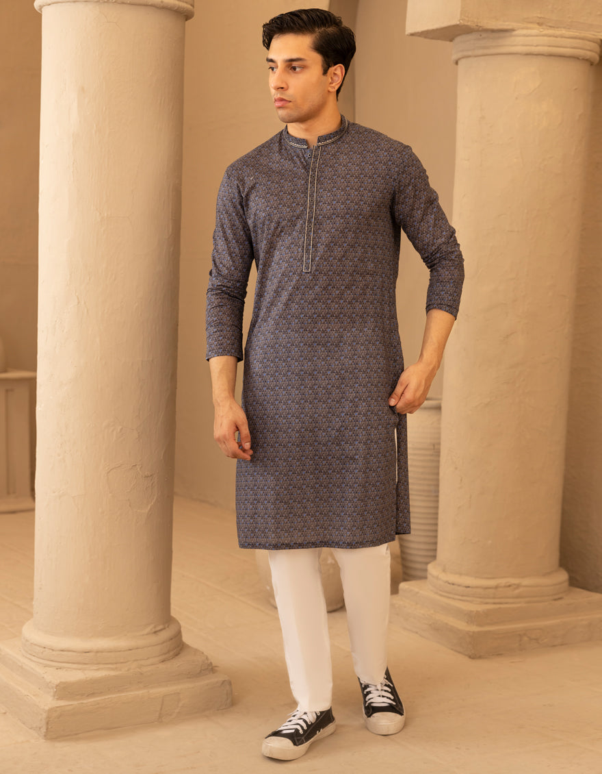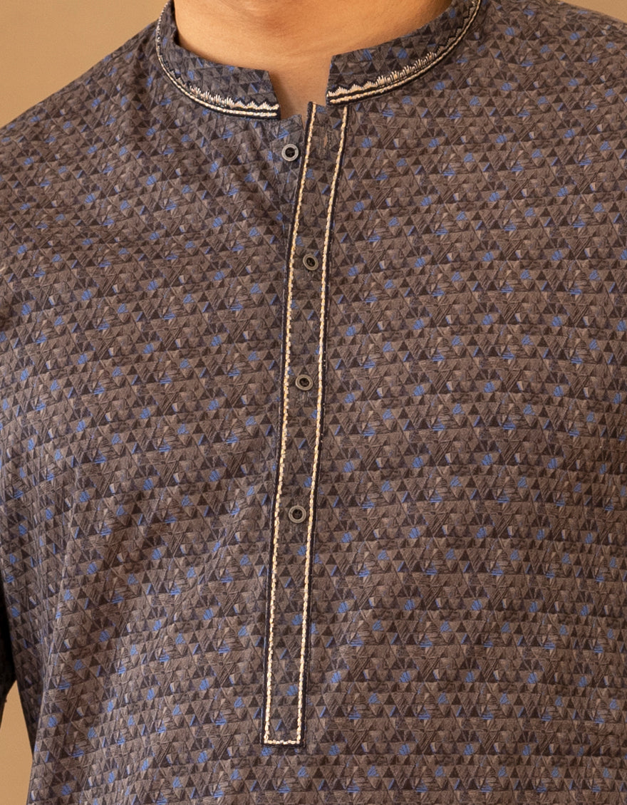 Designed with the young gentleman in mind, this grey cotton semi-formal kurta exudes charm and sophistication. Its classic yet stylish look offers versatility, perfect for both casual and formal occasions.