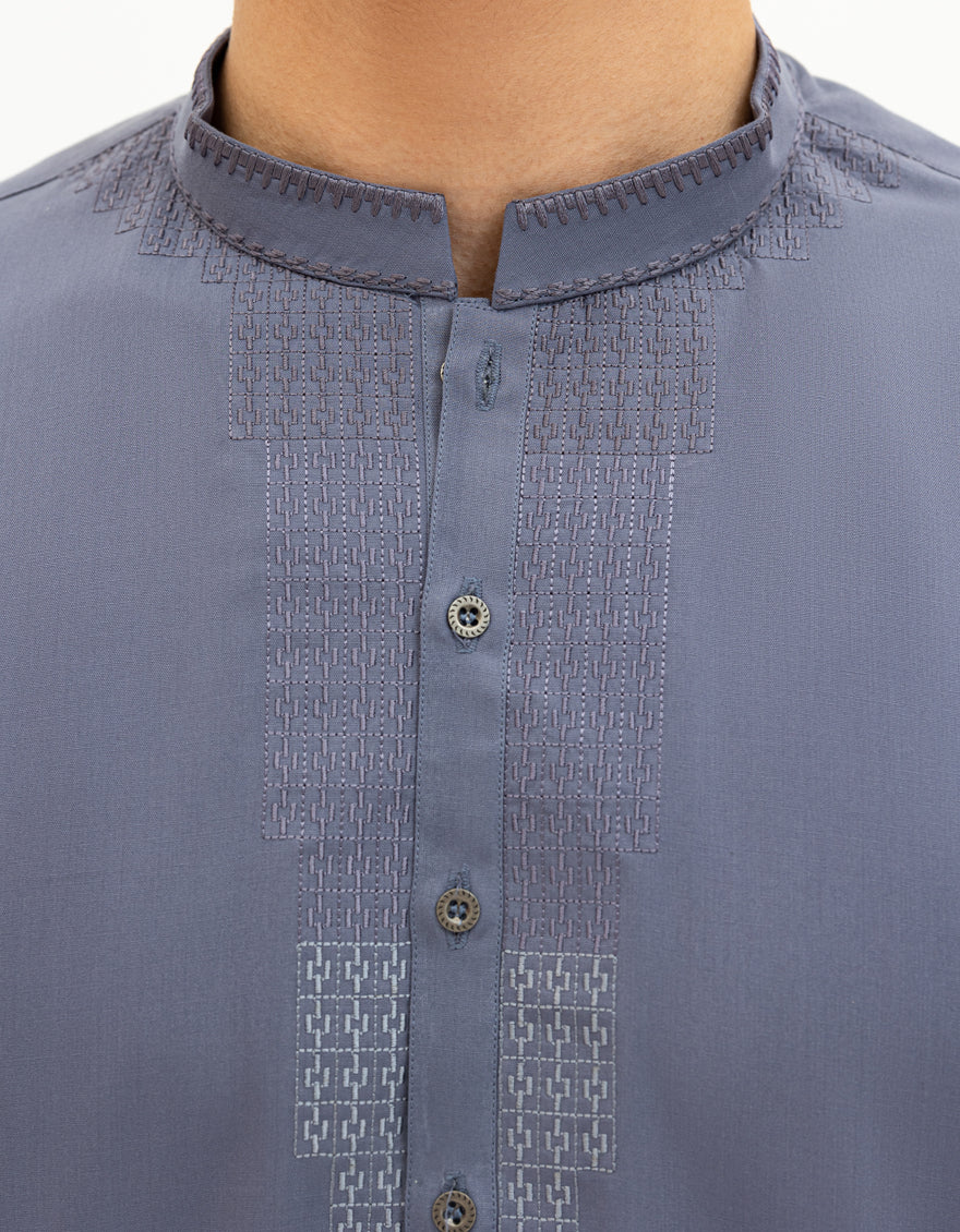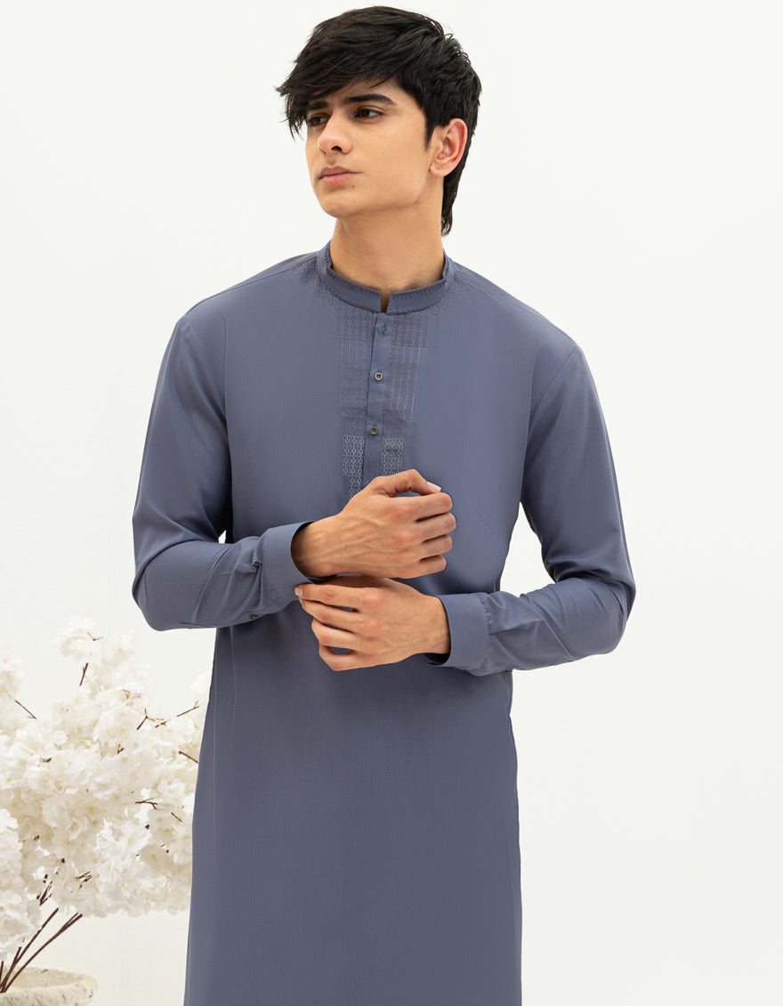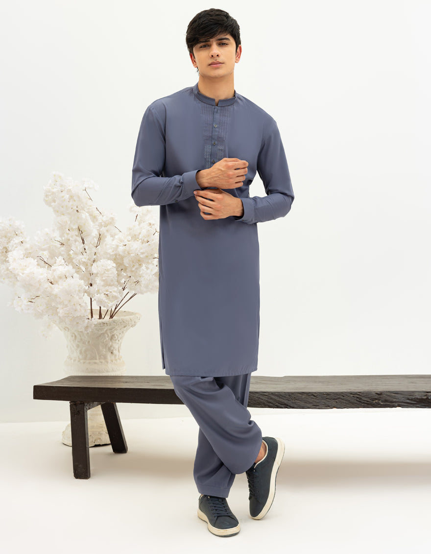 A perfect fusion of tradition and contemporary fashion, this Grey Blended Kameez Shalwar for teen boys exudes effortless style. Its classic appeal offers versatility, suitable for a wide range of events and environments.