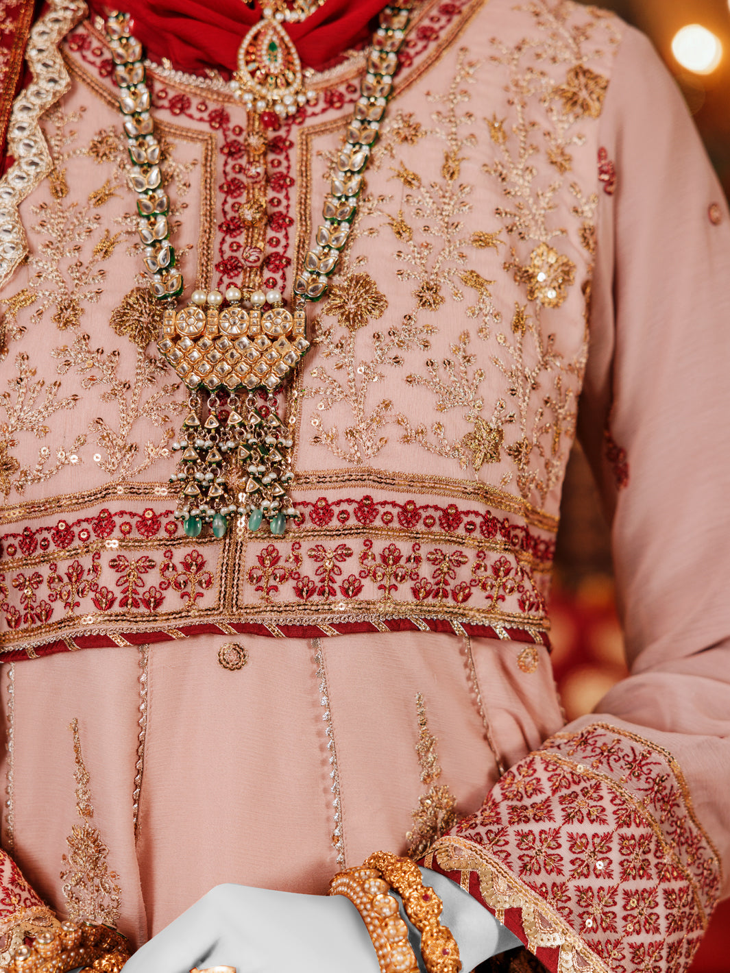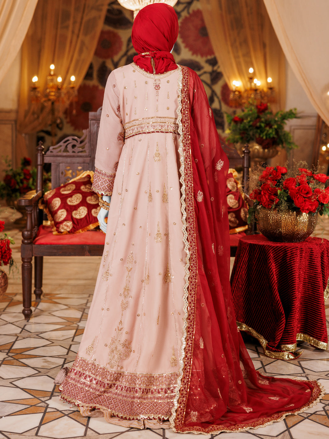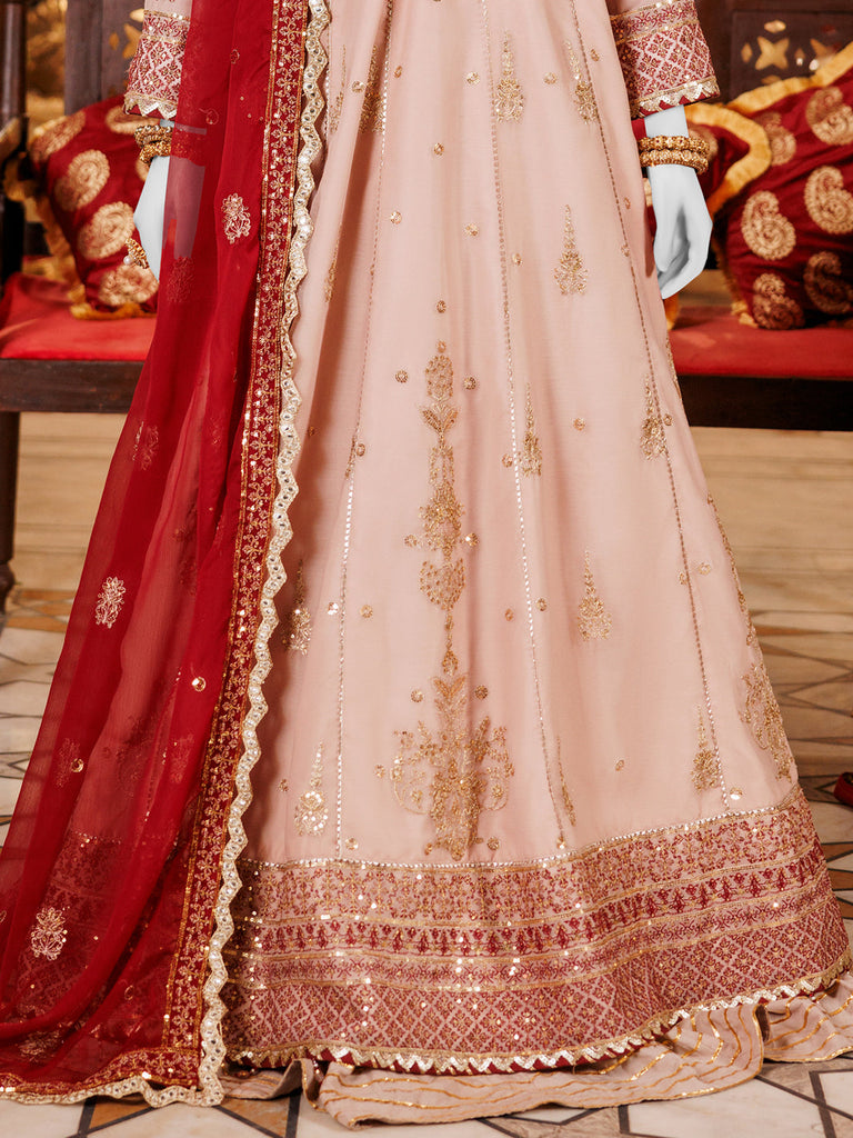 Elegant and sophisticated, this onion chiffon frock features intricate embroidery that adds a touch of luxury, perfectly paired with a vibrant red dupatta that adds a pop of color that Make a statement at your next formal event with this stunning onion chiffon frock.