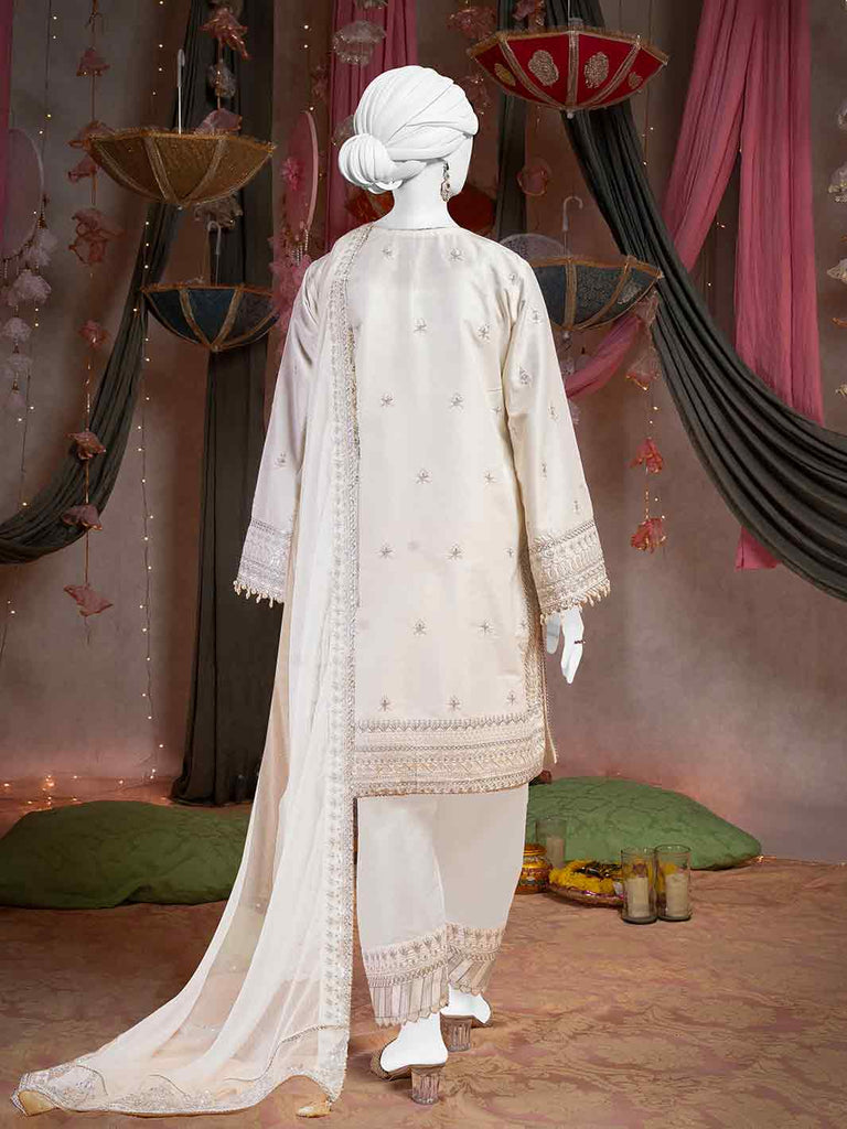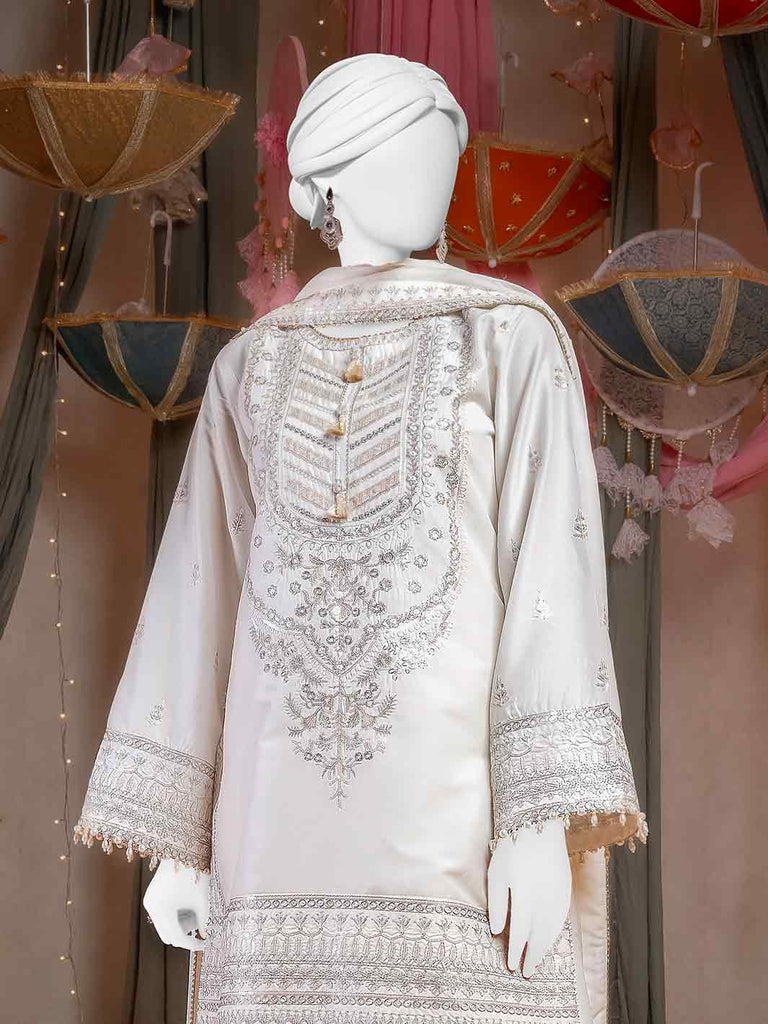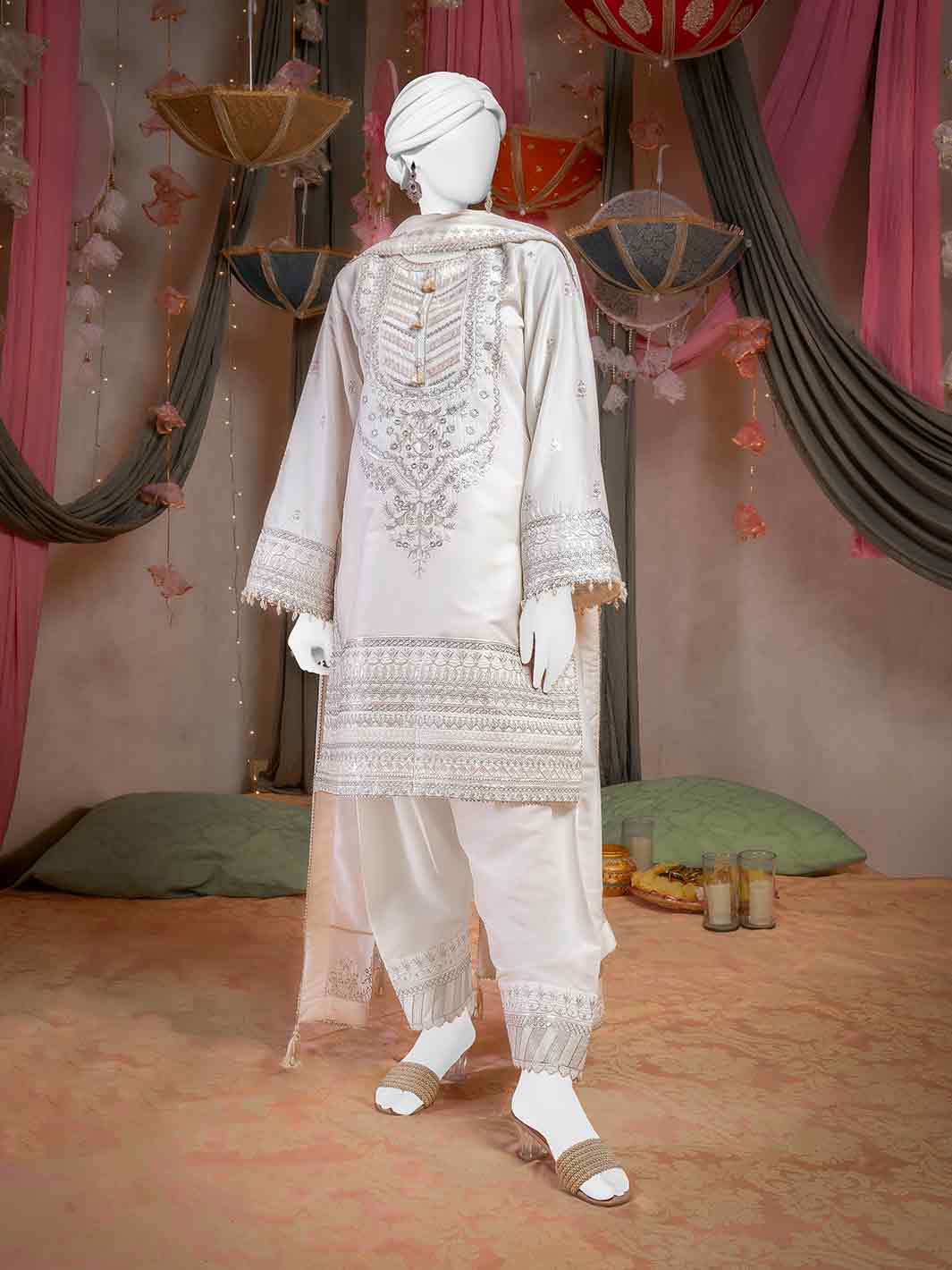 Our short embroidered kurta showcases beautiful neckline with embroidered daman and sleeves. It is paired with an embroidered scalloped shalwar, adding a graceful touch to the overall look. An embroidered dupatta beautifully uplifts the ensemble, enhancing its charm and creating a stunning, balanced appearance.