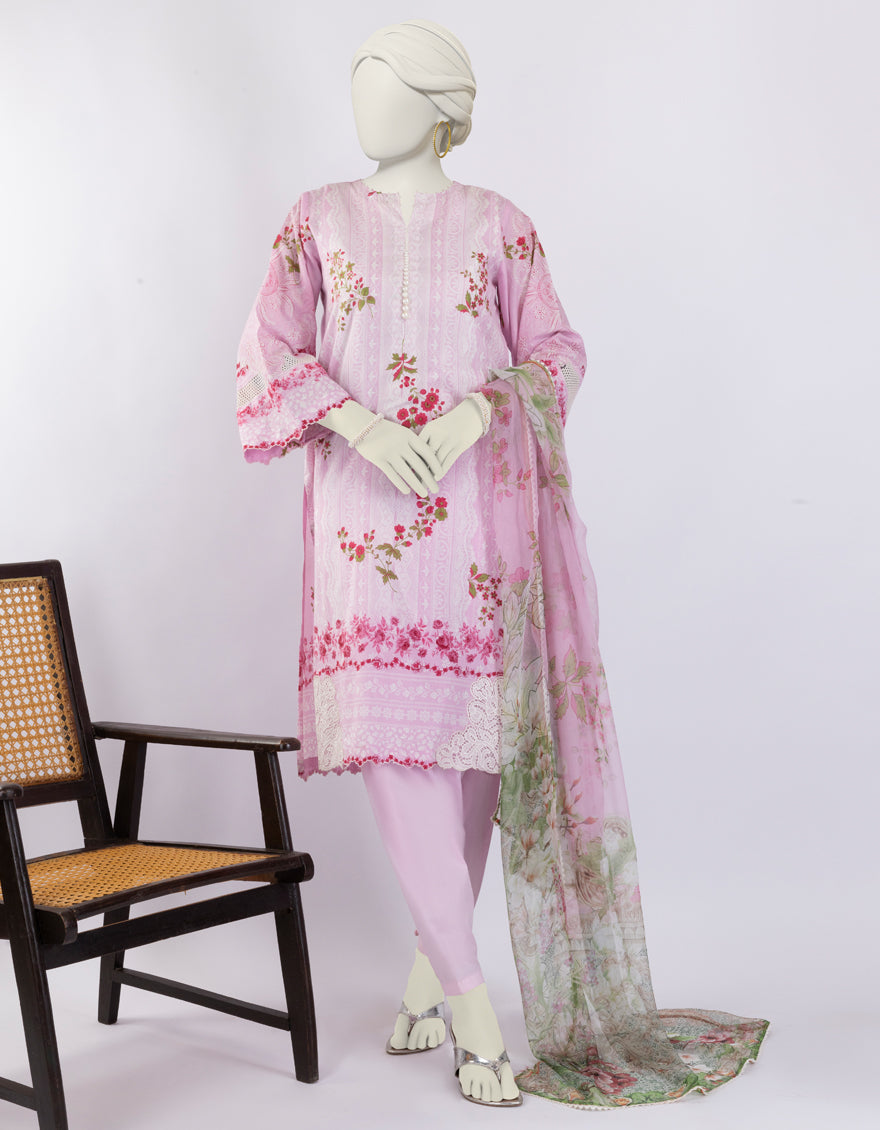 Collection: Embroidered & Printed Lawn Shirt, Dyed Lawn Trouser, Printed Bamber Chiffon Dupatta