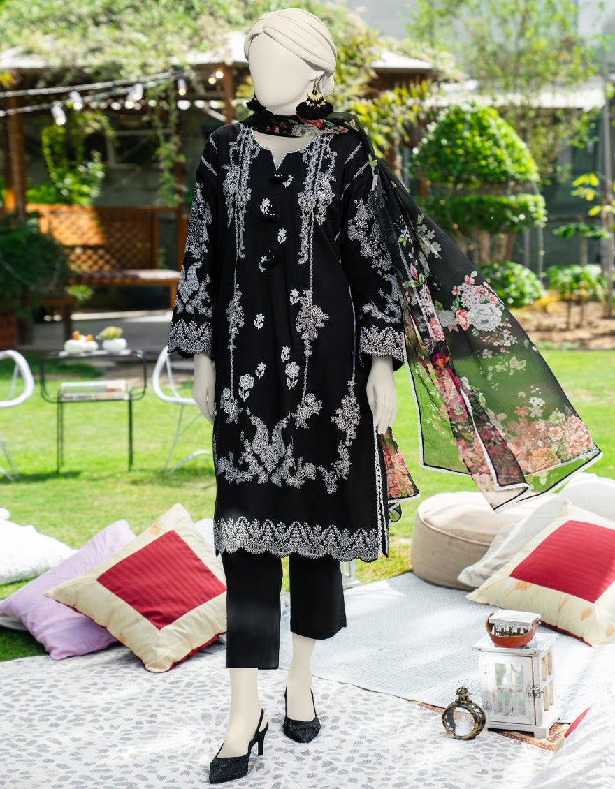 Collection: Embroidered & Paste Printed Lawn Shirt, Dyed Lawn Trouser, Digital Printed Bamber Chiffon Dupatta