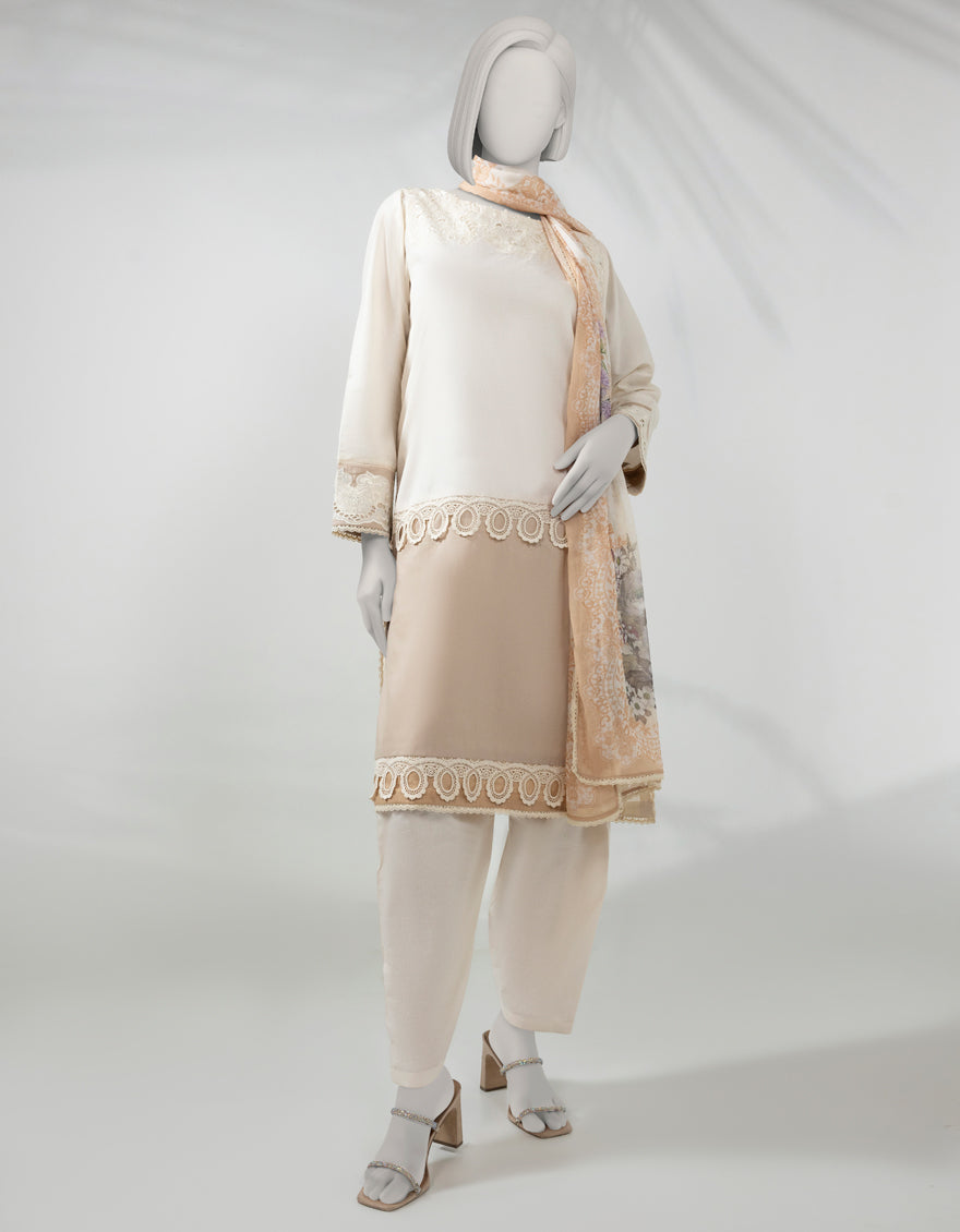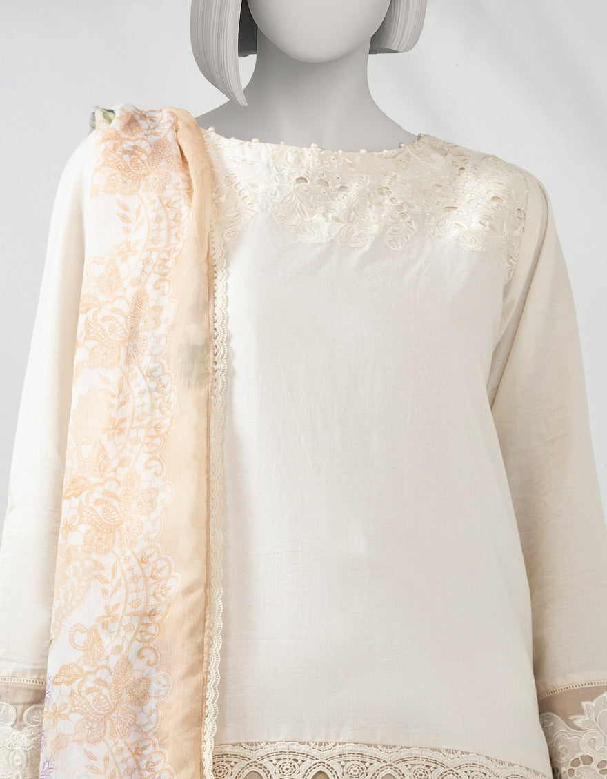 Collection: Schiffli Dyed Lawn Shirt - Dyed Basic Lawn Trouser - Basic Digital Print Impure Chiffon Dupatta