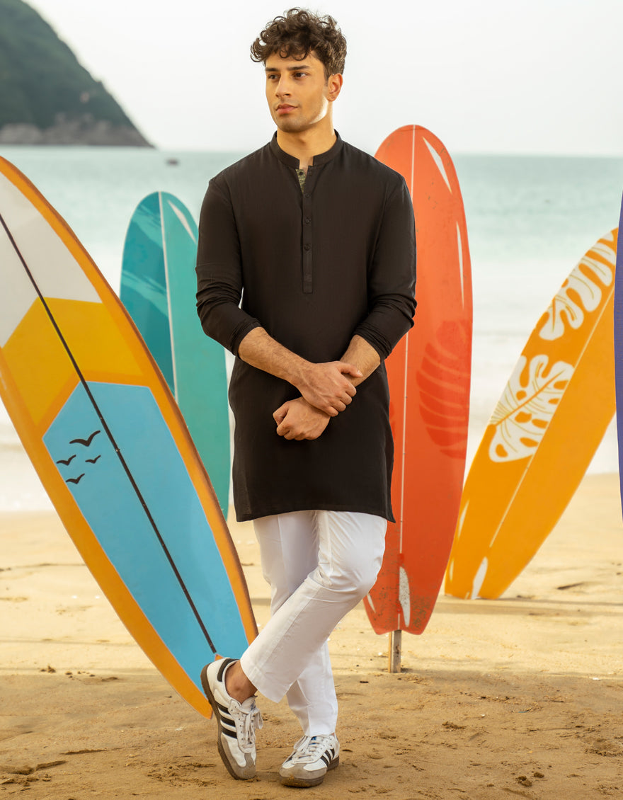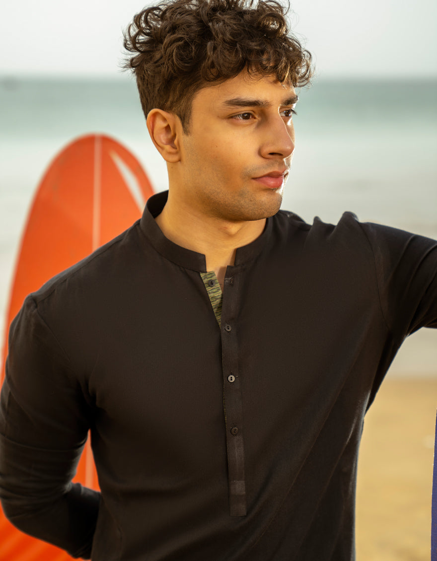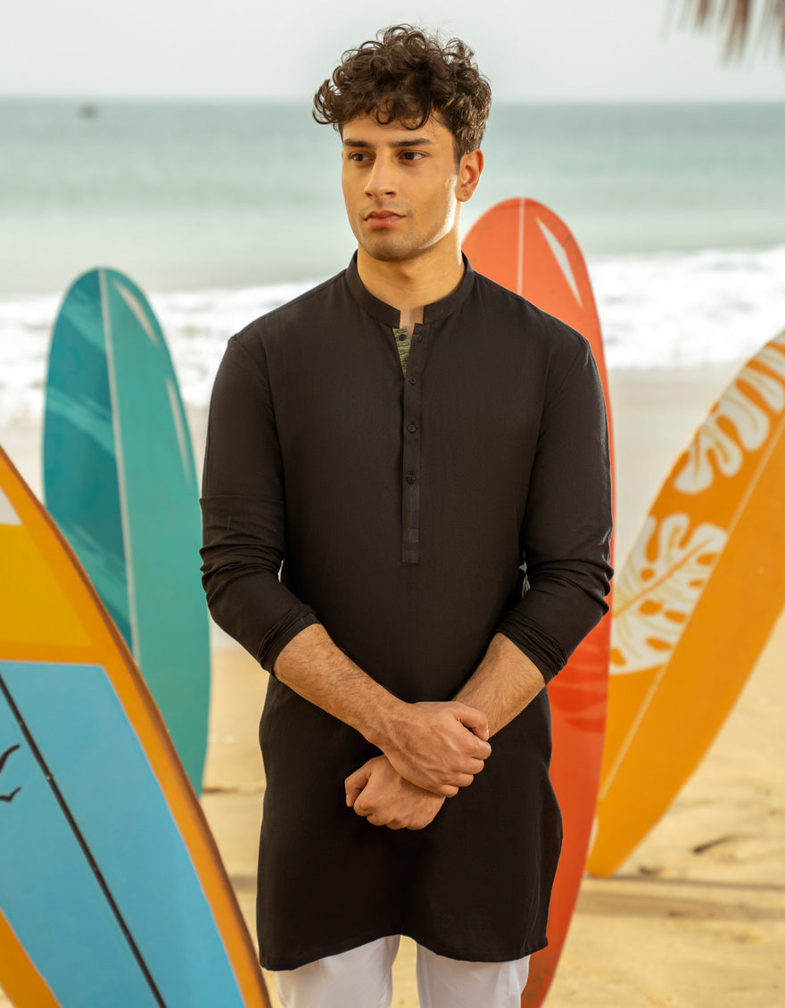 Explore our latest teen boys' Black Cotton Kurta, designed with a blend of classic simplicity and Eastern charm. These kurtas offer a stylish yet understated look, suitable for a variety of occasions.