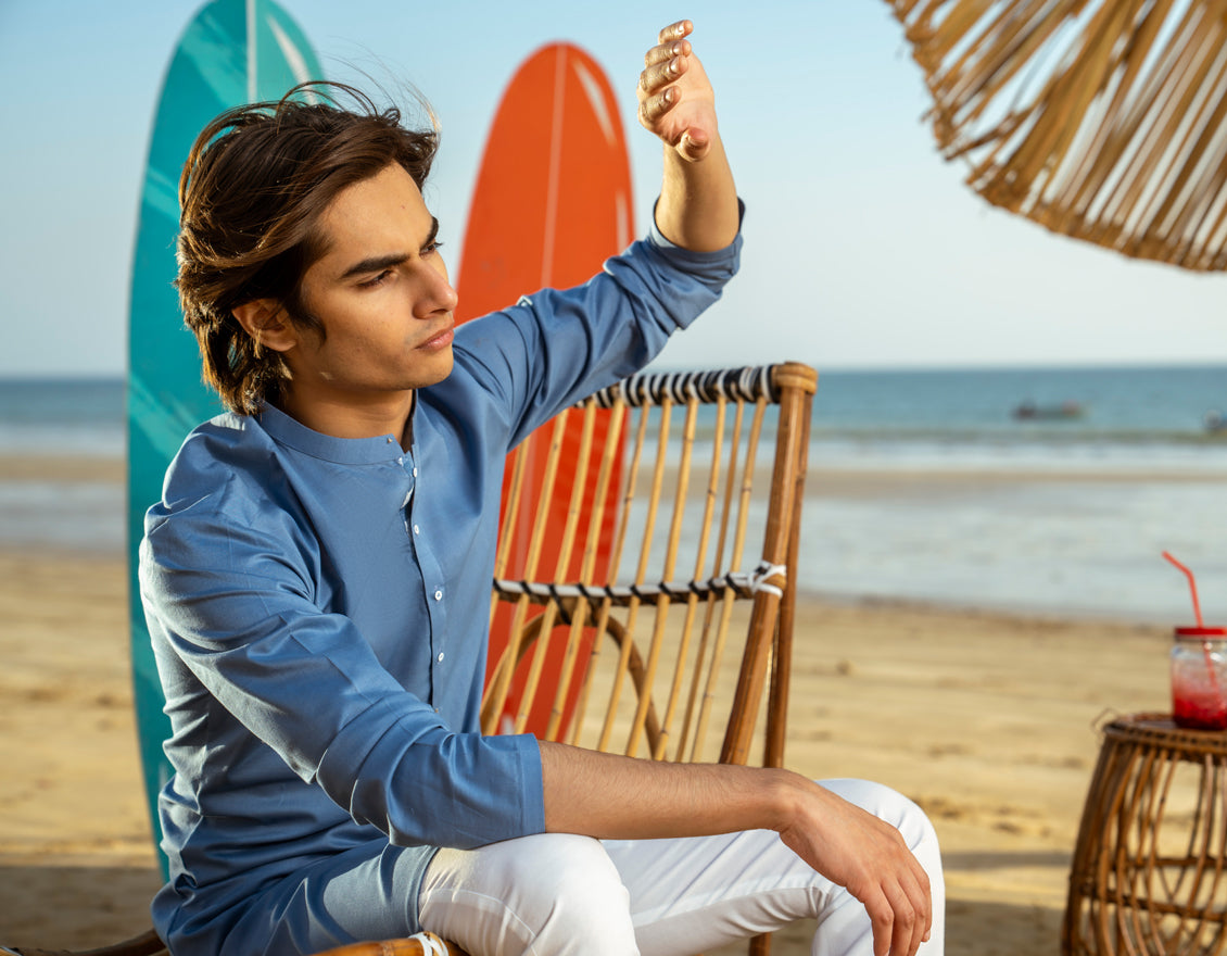 Explore our latest teen boys' Light Blue Cotton Kurta, designed with a blend of classic simplicity and Eastern charm. These kurtas offer a stylish yet understated look, suitable for a variety of occasions.