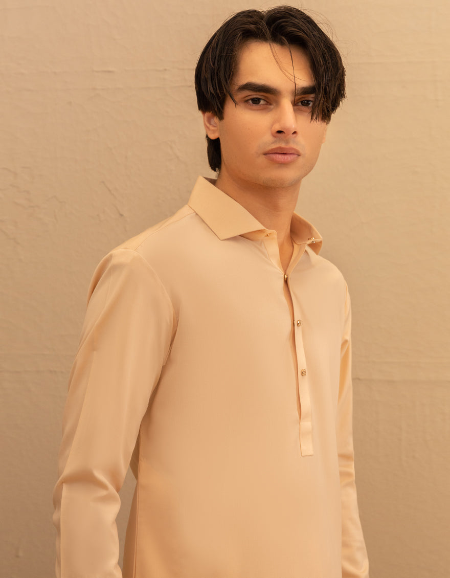 Traditional and simple, this peach blended plain kameez shalwar is made for comfortable daily wear and relaxed occasions.