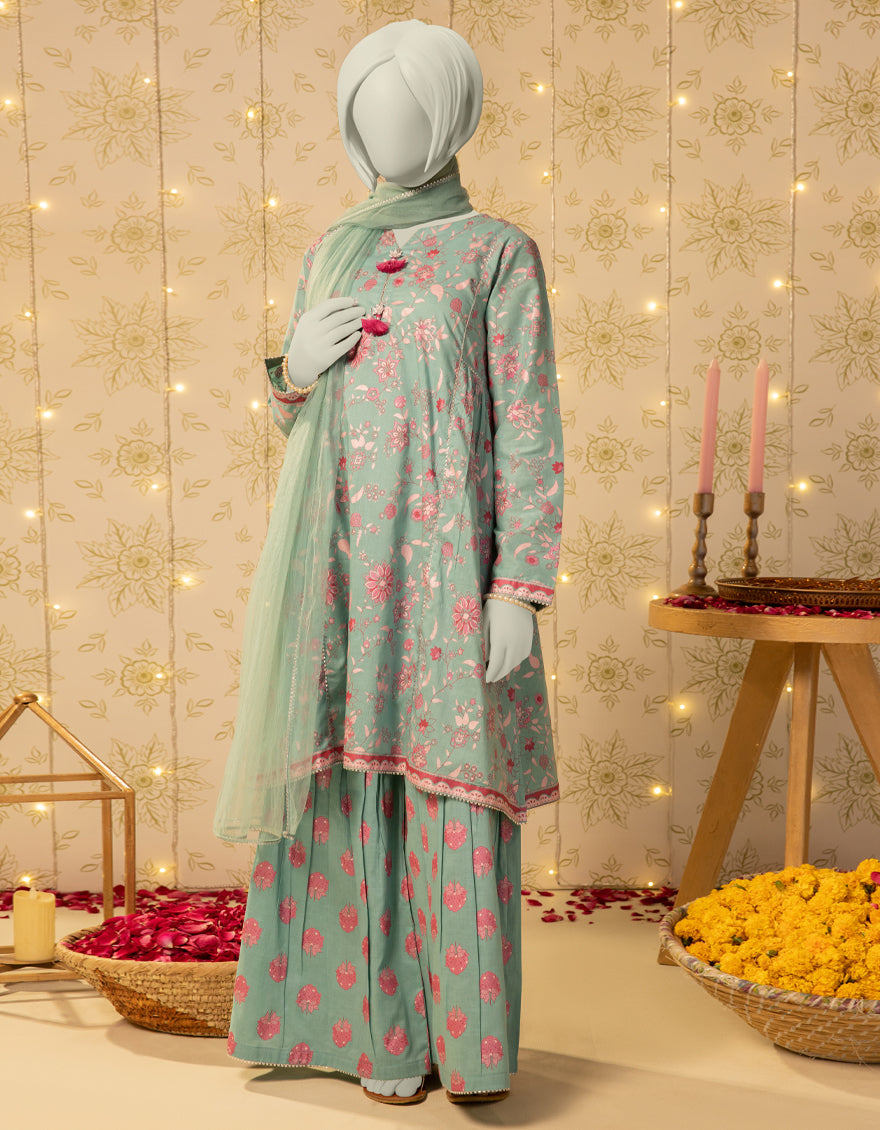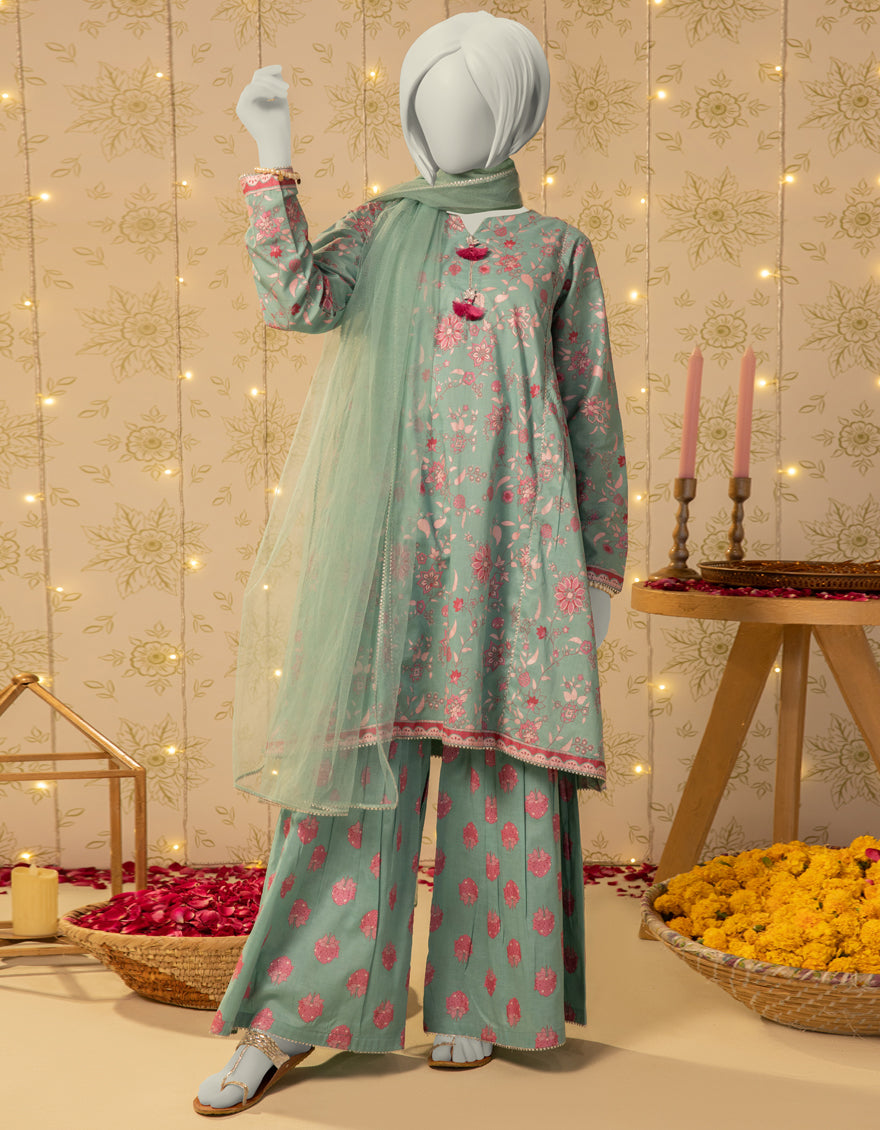 Collection: Paste & Pearl Printed Shirt & Trouser With Net Dupatta