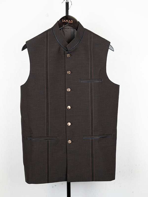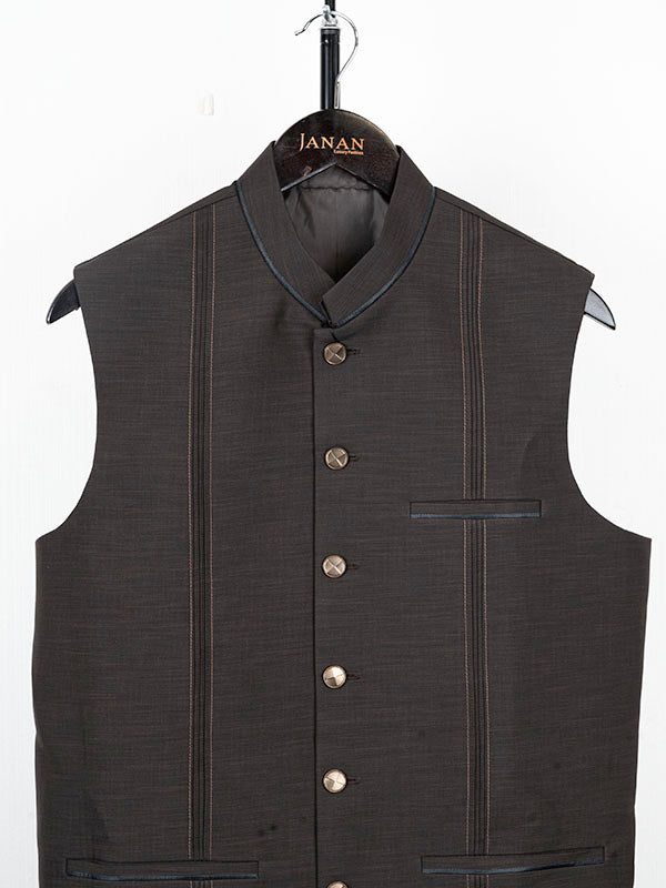 Complete your traditional outfit with this stylish Dark brown suiting waistcoat. It adds a touch of class and complements your look perfectly.