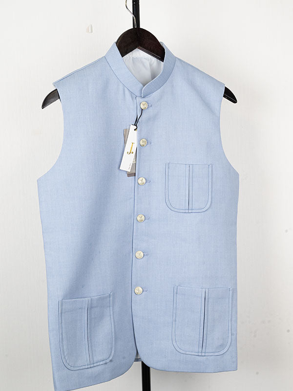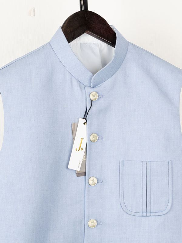 Complete your traditional outfit with this Sky Blue Blended Waistcoat. It adds a touch of class and complements your look perfectly.