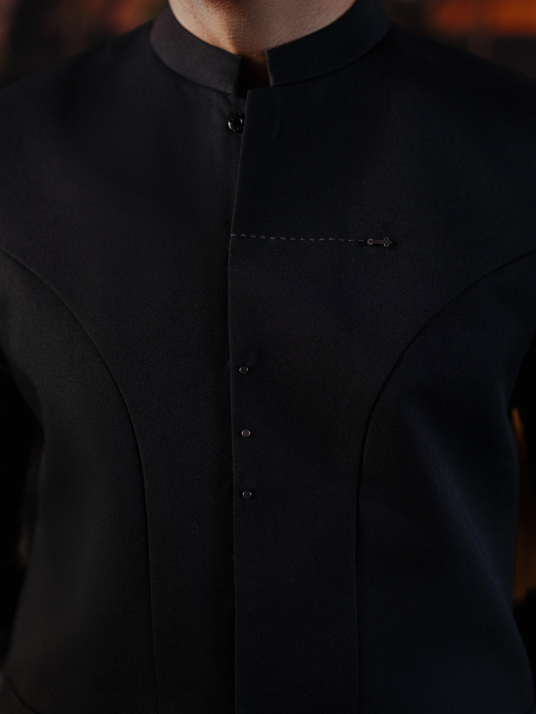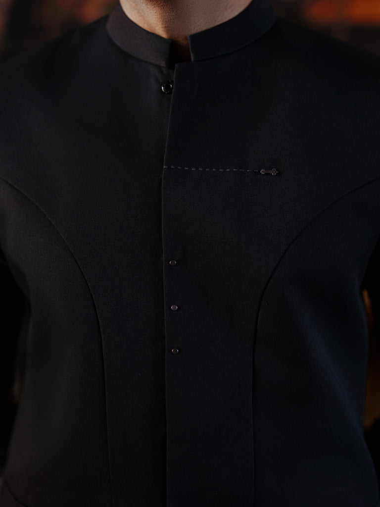 Cut and sew waistcoat uniquely crafted with patch and accent stitch details