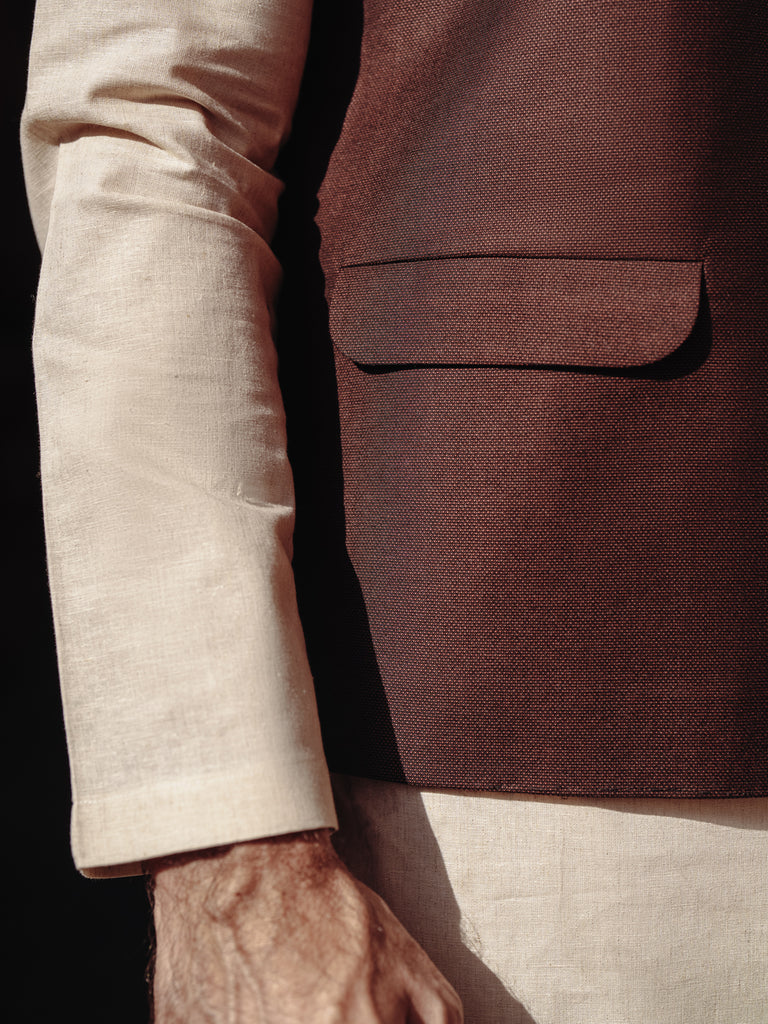Semi formal waistcoat adorned with high-quality buttons and an embroidered bunch on the front