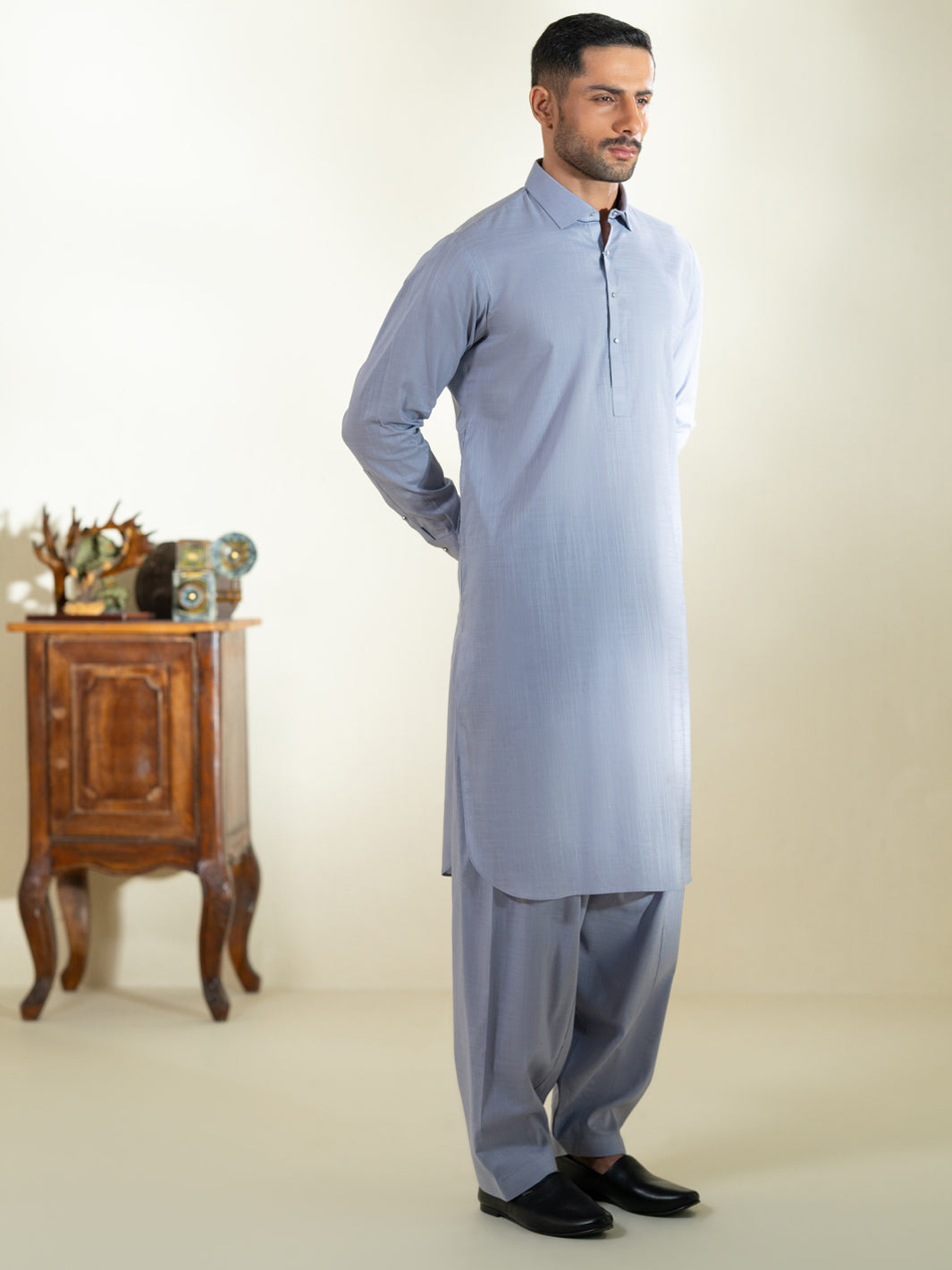 Classic Fit Kameez Shalwar Featuring Subtle Patch and Stitch Details With Premium Quality Buttons